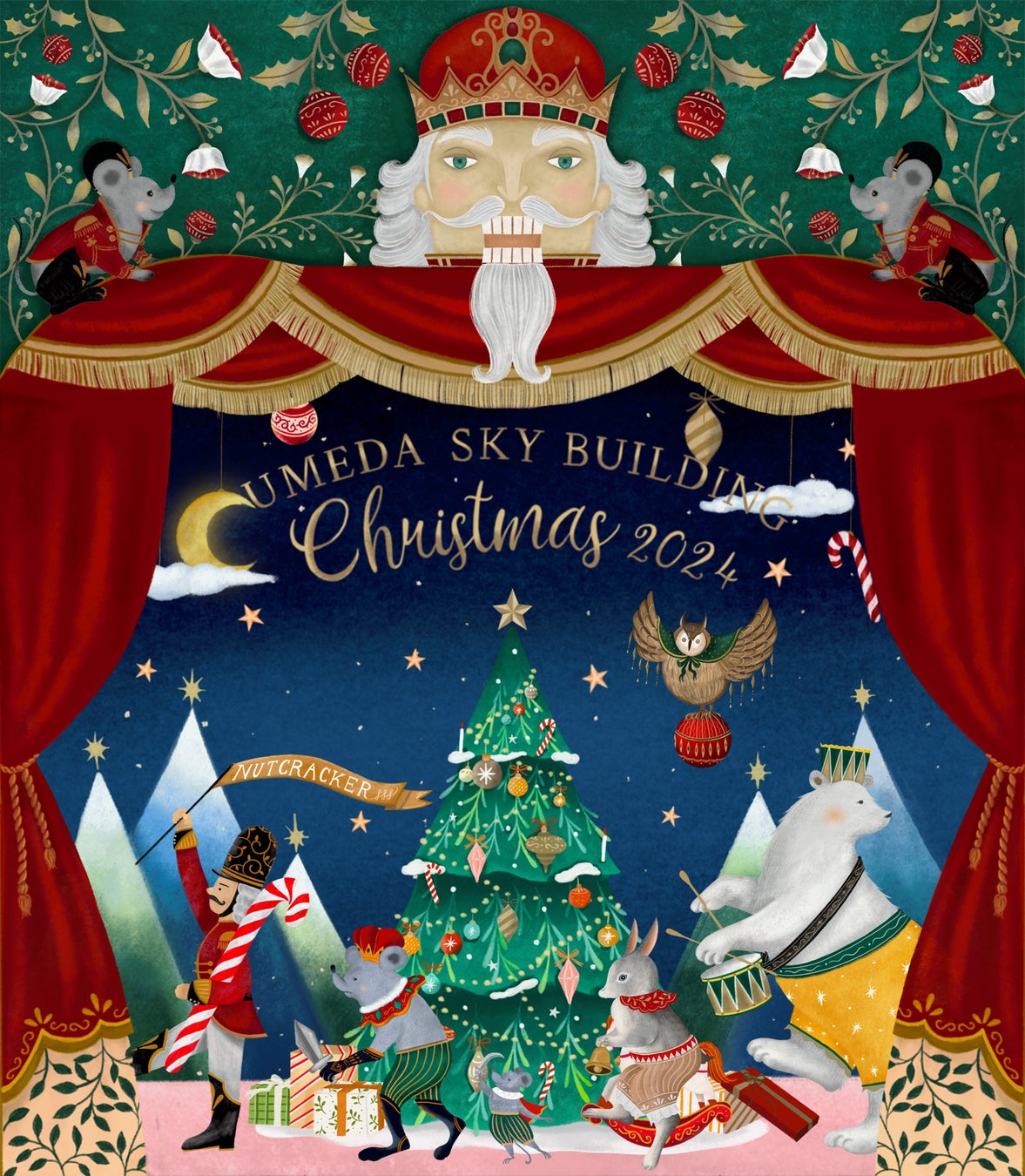 「UMEDA SKY BUILDING Christmas 2024」のテーマは『Sparkle Fantasy ~くるみ割り人形の世界~』。