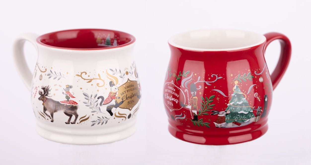 テーマにあわせて『くるみ割り人形』のイメージでデザインされた限定マグカップは白と赤の2種類をご用意いたしました。