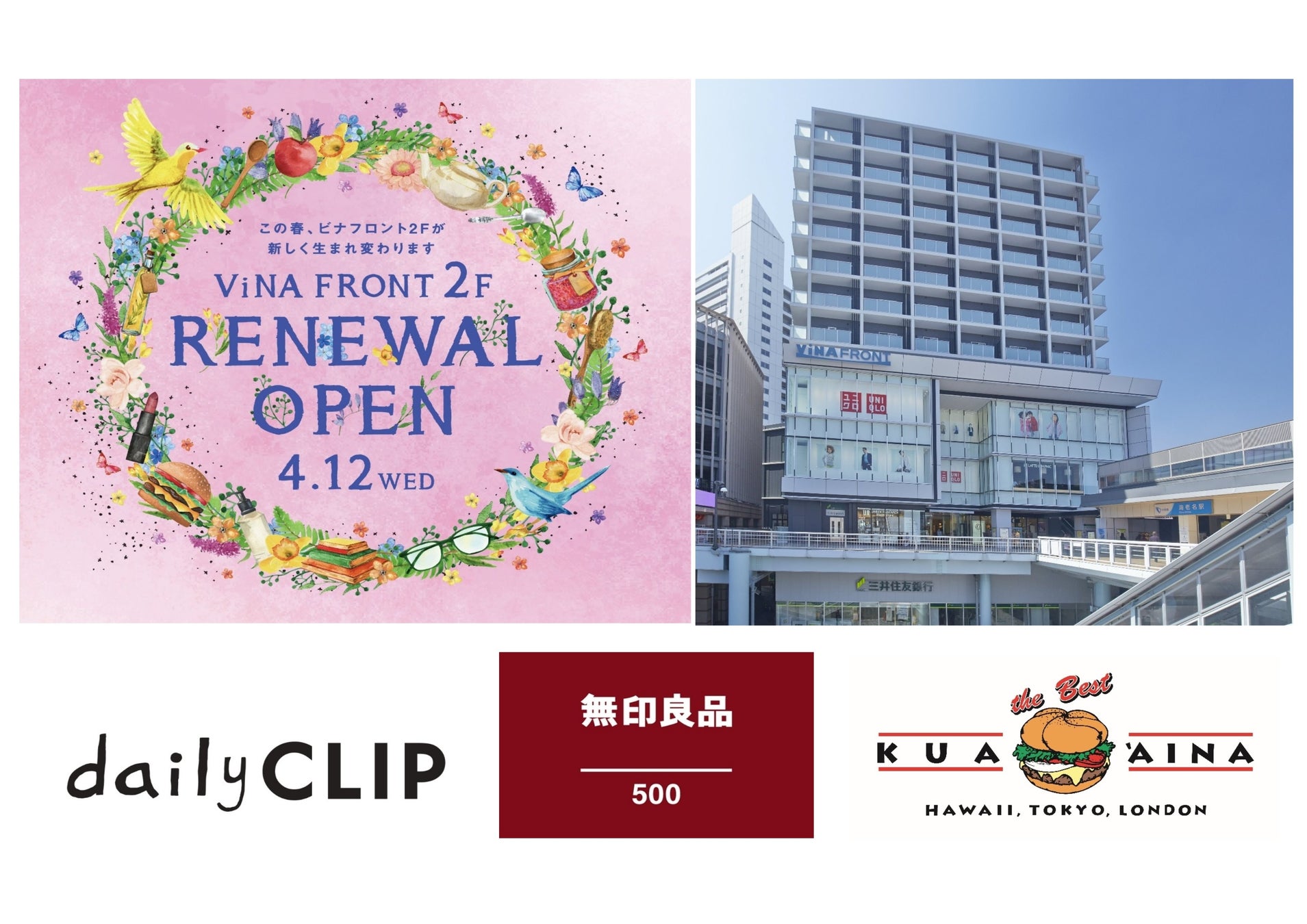 4月12日(水)のオープン日より、来館特典など各種キャンペーンを実施いたします。ぜひこの機会に、ビナフロントへ足をお運びください。