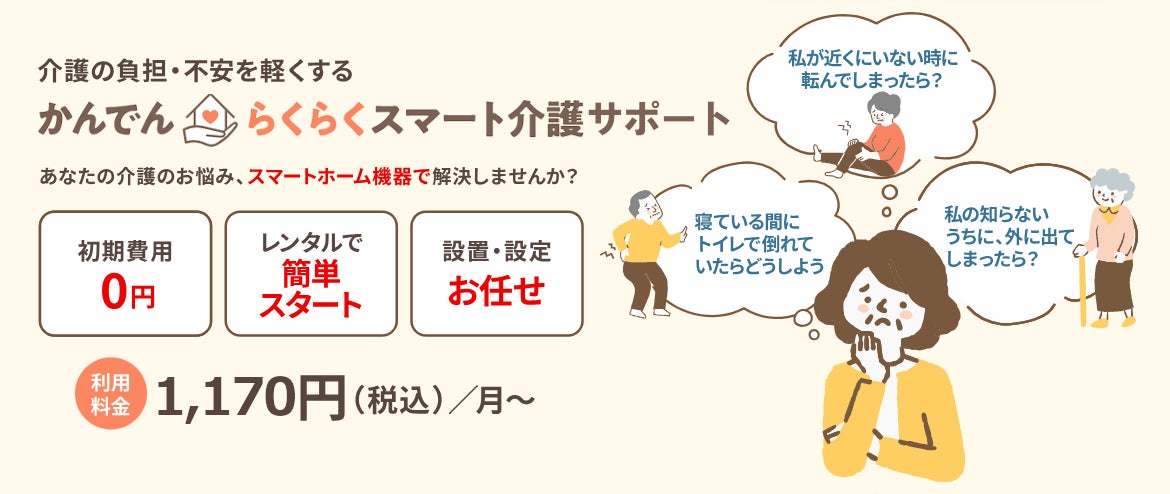 関西電力株式会社(本社:大阪府大阪市北区 代表執行役社長 森 望)は、高齢化が進展する昨今において、社会問題となっている在宅介護でのお悩みに寄り添う幅広いサービスの提供を目指し、ご家庭の環境・生活パターンに応じ最適なスマートホーム機器等を提案、設置・設定する実証サービス「かんでん らくらくスマート介護サポート」を提供開始いたしました。