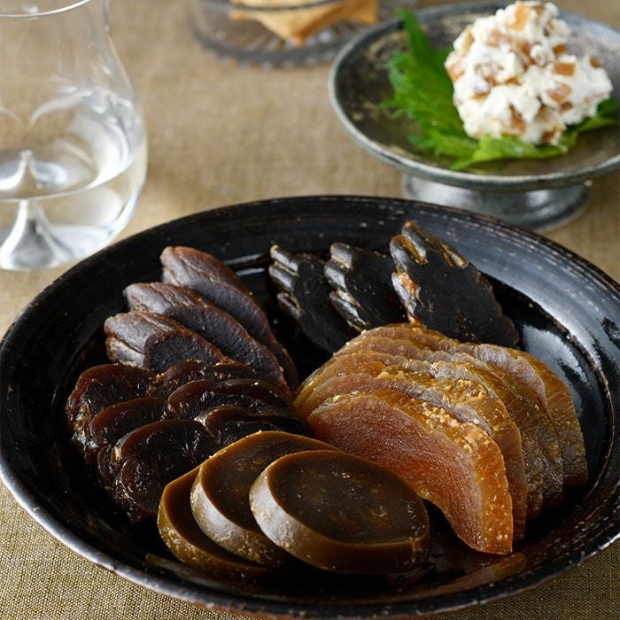 江戸時代初期に創業した老舗の奈良漬は、その昔、徳川家康に献上したのが始まり。純良な酒粕に長い年月漬けて自然熟成させた、瓜・キュウリ・スイカ・ナス・守口大根の5種を、大迫力の樽でお届け。芳醇な香り、歯ざわりが心地よく、得も言われぬまろやかな味わいに惹き込まれる。