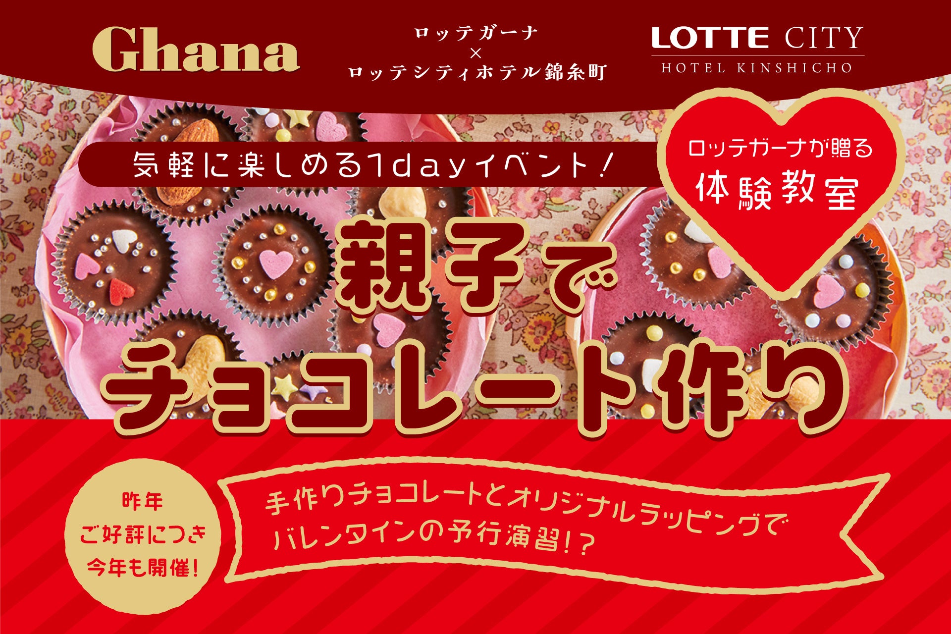 ロッテシティホテル錦⽷町(所在地:東京都墨⽥区錦⽷4-6-1、総⽀配⼈:福井朋也)は、2024年2月に初めて実施しご好評をいただいた、ロッテ「ガーナ」とコラボレーションした「親子でチョコレート作り体験教室」をバレンタイン時期に合わせて[2025年2月11日(火)14:00-16:00]に開催いたします。