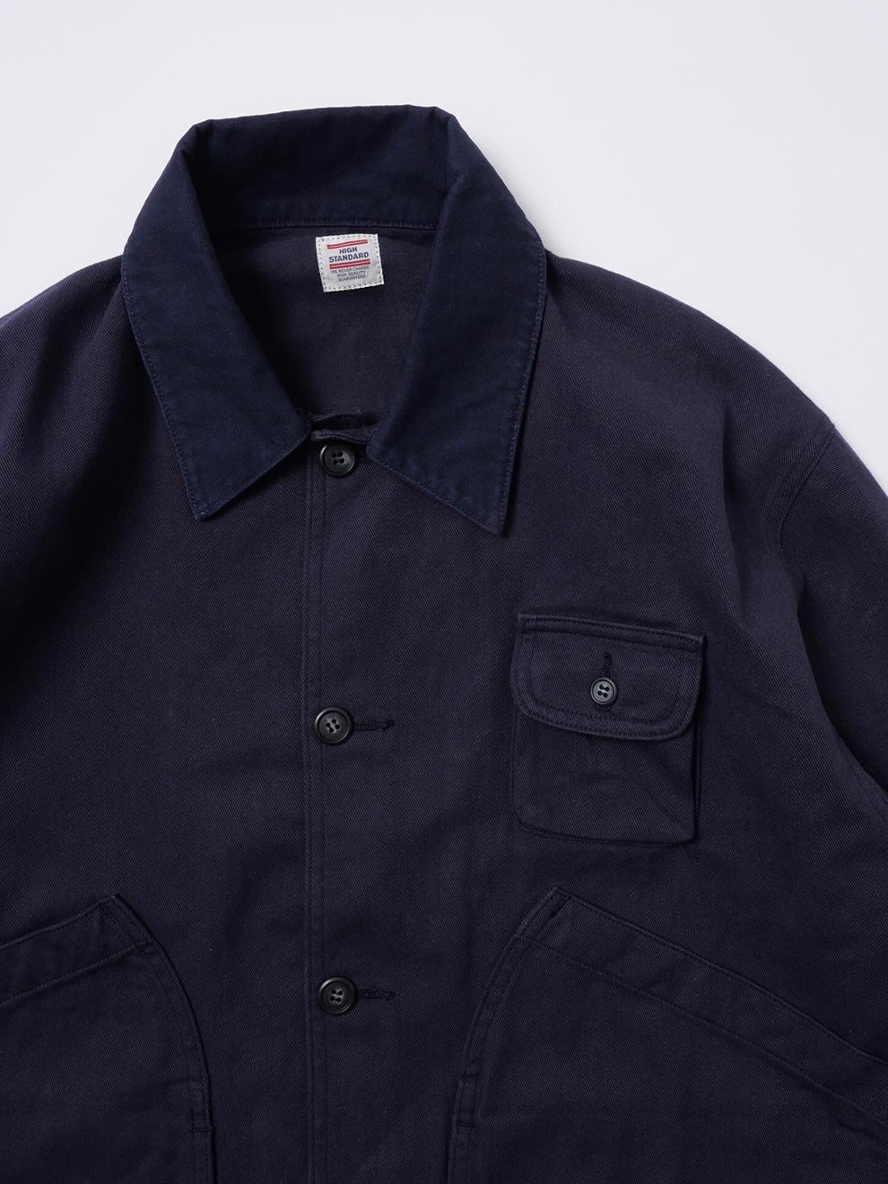 2026年春、〈HIGH! STANDARD〉はこのクラシックな背景を踏まえ、日常使いを前提にオリジナルとして設計しました。素材には、着込むほどに風合いが増すコットンツイル100%を採用。裏地のない軽やかな仕様でありながら、適度なハリによって立体的なフォルムを保ちます。