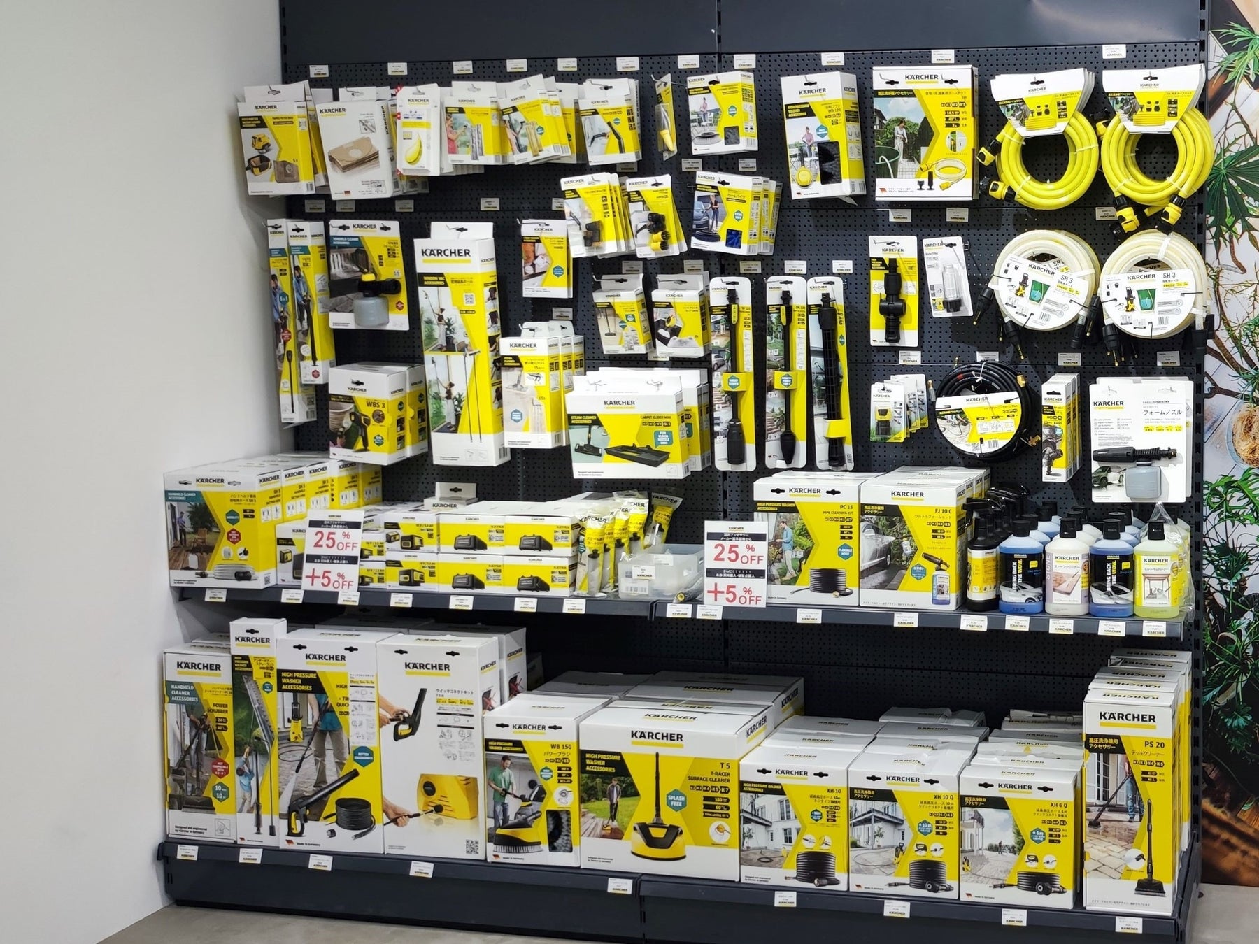 今回オープンするケルヒャー ジャパンの直営店となるアウトレットショップでは、人気製品の高圧洗浄機、スチームクリーナー、窓用バキュームクリーナーをはじめ、各種アクセサリーや消耗品を特別価格で提供いたします。また近隣の施設管理者様におすすめのエントリークラスの業務用製品もご用意しています。実際に製品をお試しいただける体験型ショップになりますので、ケルヒャー製品初心者のお客さまにも納得してご購入いただけるよう、専門スタッフよりご案内させていただきます。