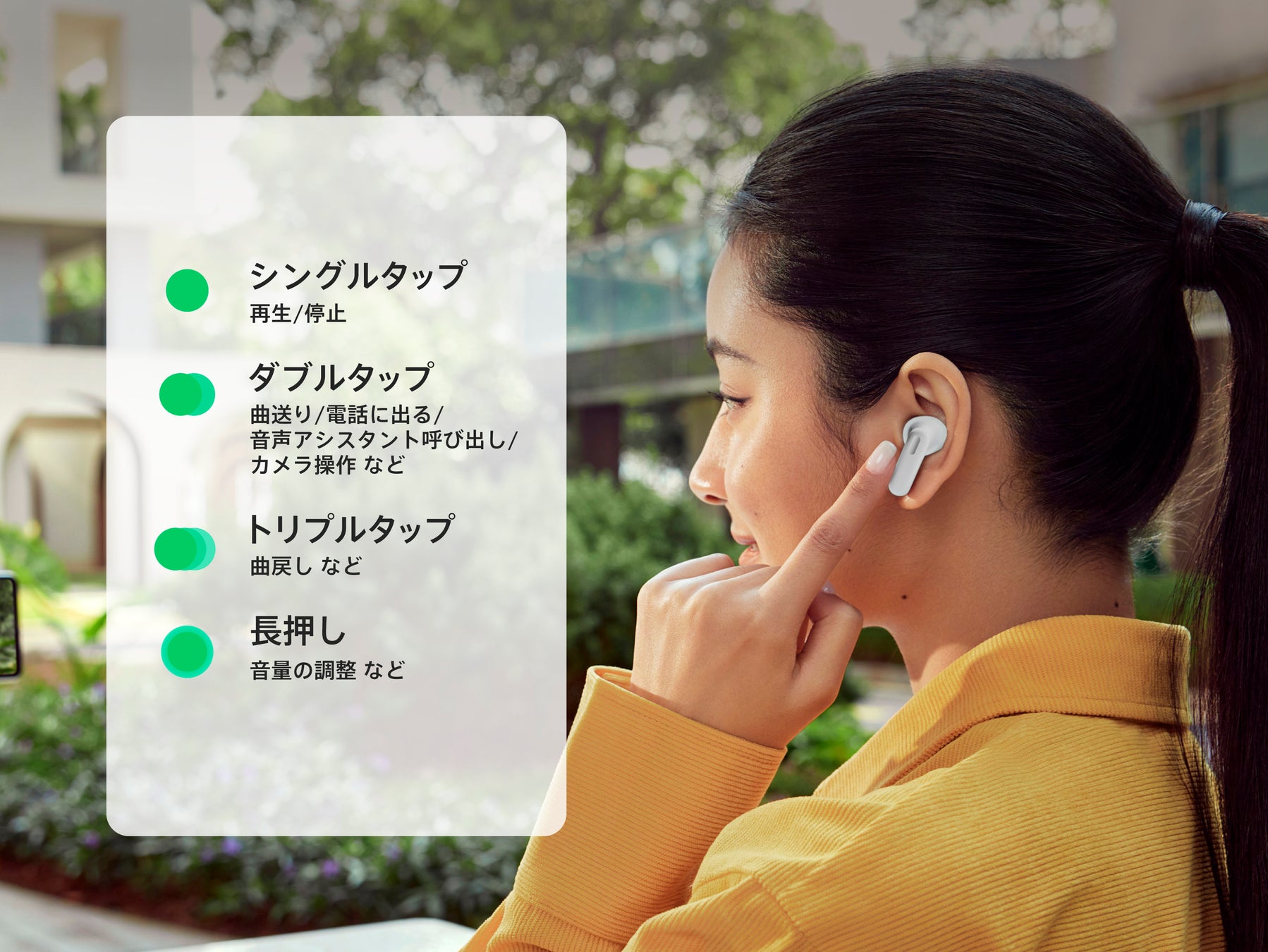 スマートフォンで操作しなくてもイヤホンに触れるだけで簡単に操作ができるタッチコントロールに対応しています。アプリで設定を行うことで、イヤホン操作でGoogleのAIアシスタント「Gemini」を呼び出せるほか、音楽の再生・停止・曲送り、着信応答や、ColorOS 12以降のOPPOデバイスカメラのシャッター操作もできます。
