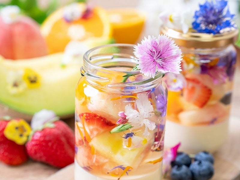 エディブルフラワーとは、食べられる花(食用花)を指す。 主に、農林水産省のガイドラインに基づいて食用として安全に栽培された花であれば、安心して食べることができる。エディブルフラワーはその色鮮やかな色合いが楽しめるだけでなく、無農薬で栽培され栄養価も高い。特に、フルーツフラワープリンにも使用しているカレンデュラは、メディカルハーブとして知られ、皮膚や粘膜を修復・保護する創傷治癒の効果が期待される。また、近年持続可能な農業の推進に貢献するとして注目される水耕栽培で生産されたエディブルフラワーは、環境に配慮した計画生産が可能。安定した食料生産と供給につながる。さらに、水資源を無駄にしない循環システムを取り入れ、周辺環境への環境リスクを低減する有機栽培方法で育てられている。