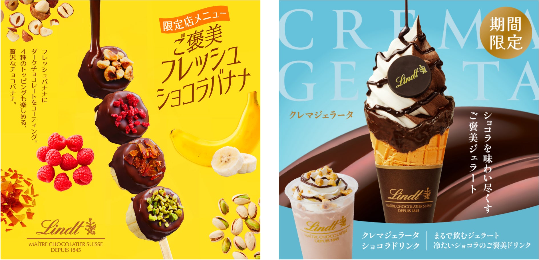 2025年に創業180周年を迎え、世界120カ国以上で愛されているスイス発プレミアムチョコレートブランド「Lindt(リンツ)」の日本法人リンツ&シュプルングリージャパン株式会社(代表:福本千秋、本社:東京都港区赤坂)は、2025年4月11日(金)より常設のチョコレートファウンテンから流れ出るフレッシュなチョコレート使用した「ご褒美 フレッシュショコラバナナ」を全国4店舗で期間限定で新発売いたします。同日には、リンツのチョコレートを贅沢に味わえるジェラート「クレマジェラータ」を、同じ味わいのドリンクとともに販売開始。リンツの高品質のチョコレートをふんだんに使用した商品たちとともに初夏を楽しんでみるのはいかがでしょうか。