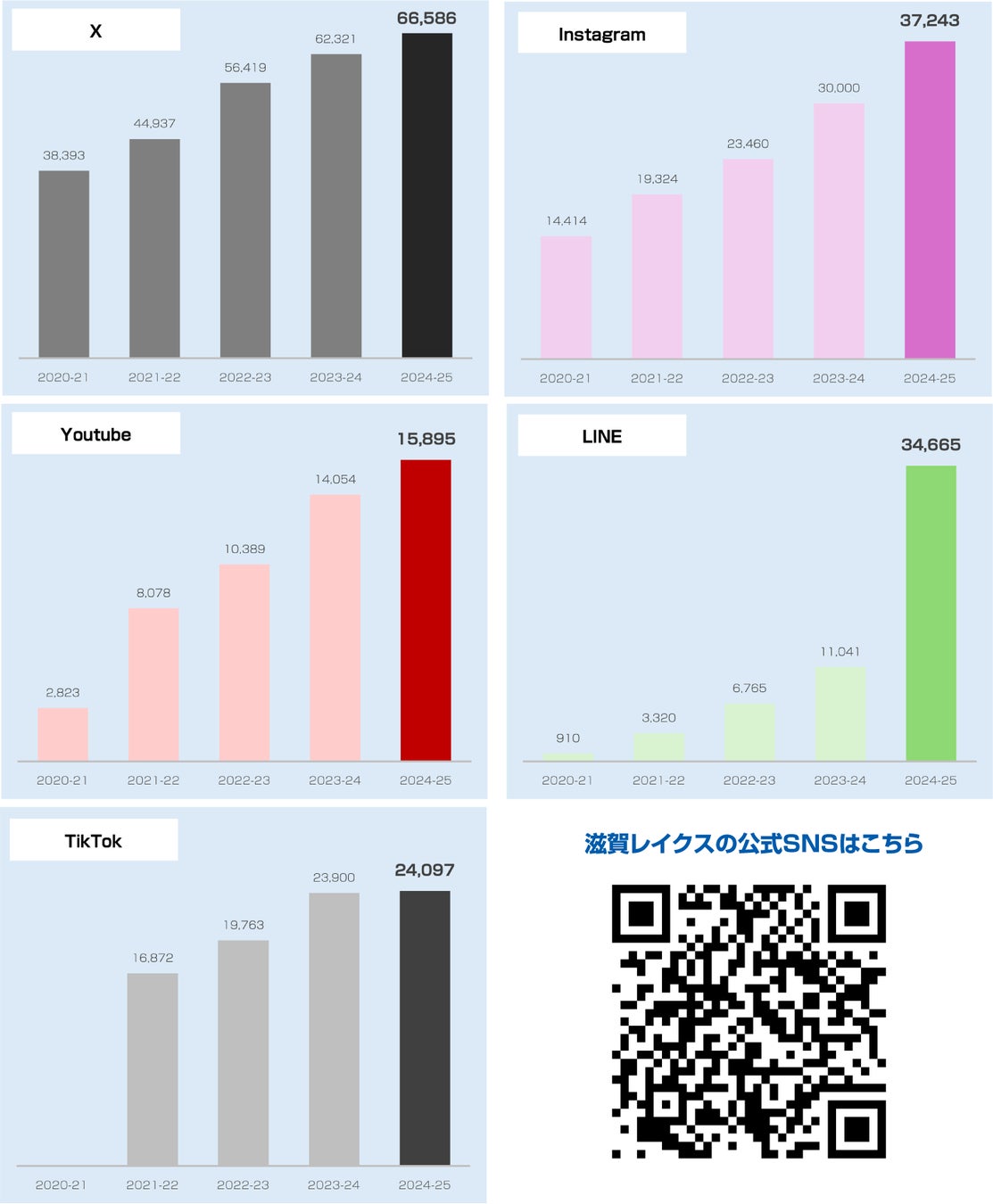 競技面では大変厳しい戦績となりましたが、ホーム会場である滋賀ダイハツアリーナでは「圧倒的なホームコートアドバンテージ」をテーマに集客施策を強化し、「前期比122%となる1試合平均4,345人のご来場人数」と「クラブ最多来場者記録を5,064人に更新(前記録4,691人)」し、クラブ創設以来初めて平均4,000人を超えるお客さまにご来場いただくことができました。