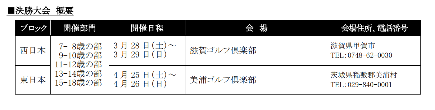・優勝者特典 : 2027年の「世界ジュニアゴルフ選手権 日本代表選抜大会」の7-8歳の部決勝シード権付与※2