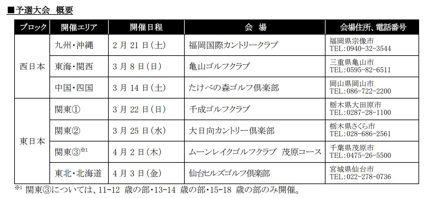 ・日程 / 会場 :2026年2月~4月に7会場で予選大会、2026年3月~4月に2会場で決勝大会を全てPGM運営ゴルフ場にて開催