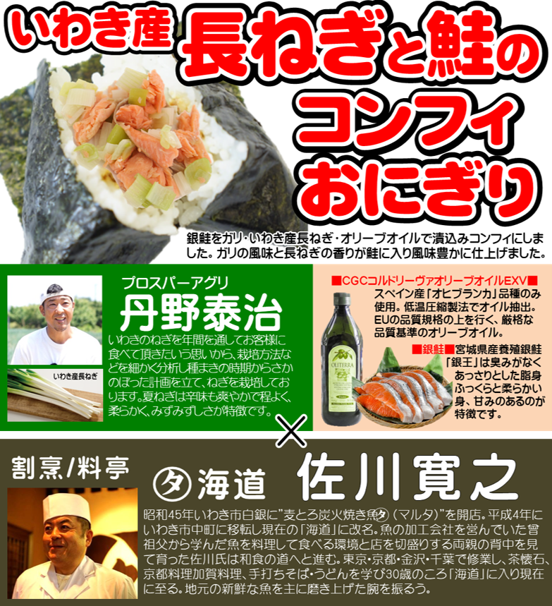 ②佐川シェフ監修「いわき産長ねぎと鮭のコンフィおにぎり」