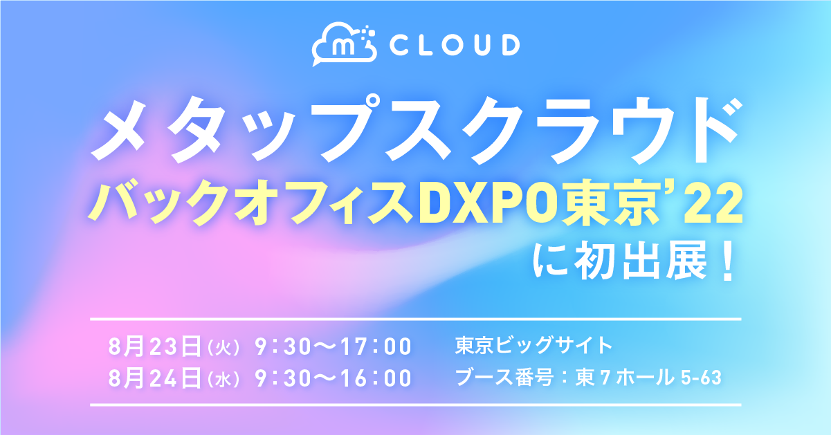 DX支援事業を手掛ける株式会社メタップス(渋谷区、代表取締役社長 山崎 祐一郎)が提供するSaaS一元管理ツール「メタップスクラウド」は、8月23日(火)、24日(水)に東京ビッグサイトにて開催される「経営・経理・人事・労務DX推進展 バックオフィスDXPO」に初出展いたします。