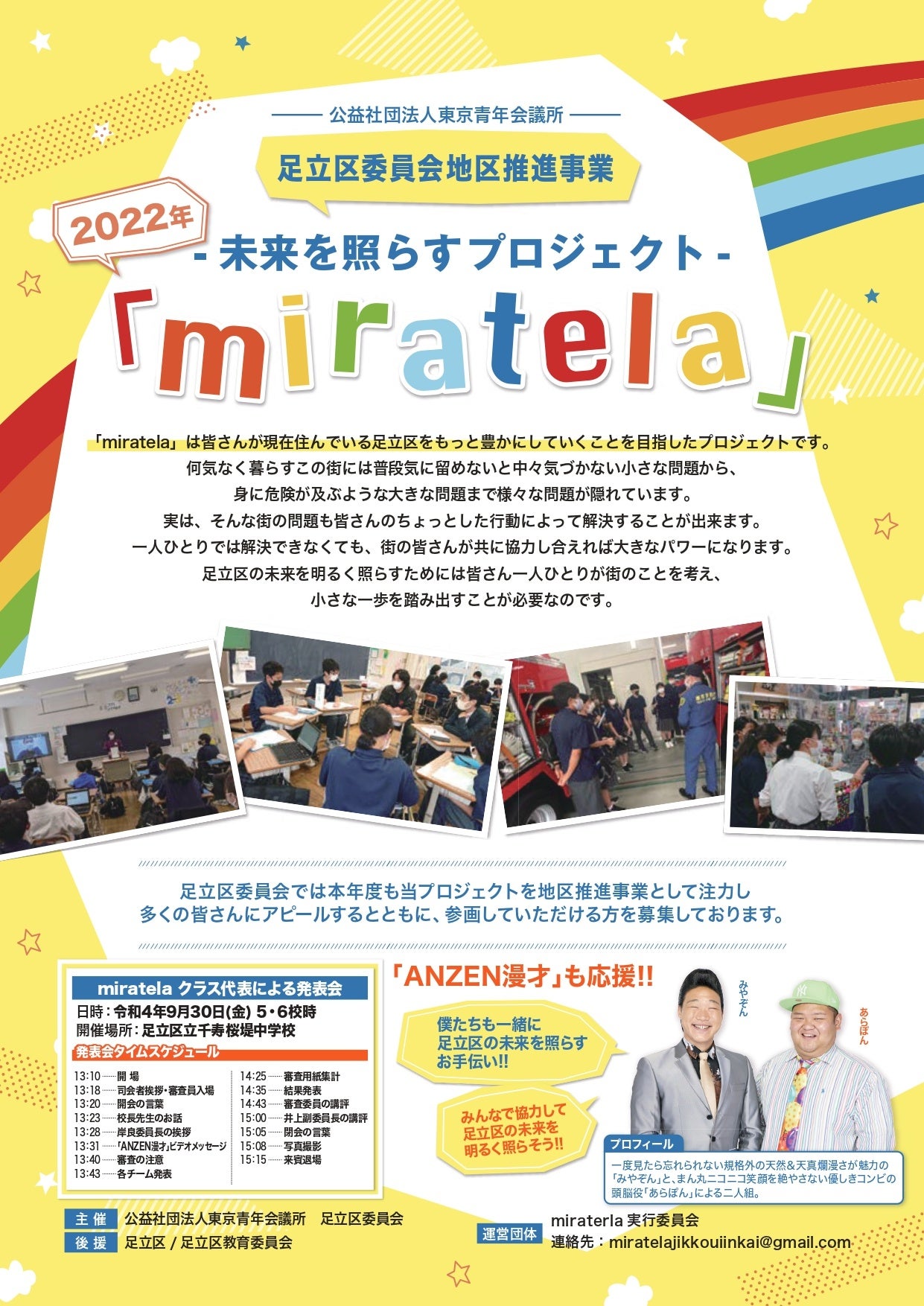 未来を照らすプロジェクト『miratela』 ~足立区委員会地区推進事業~ 公益社団法人東京青年会議所 足立区委員会主催。