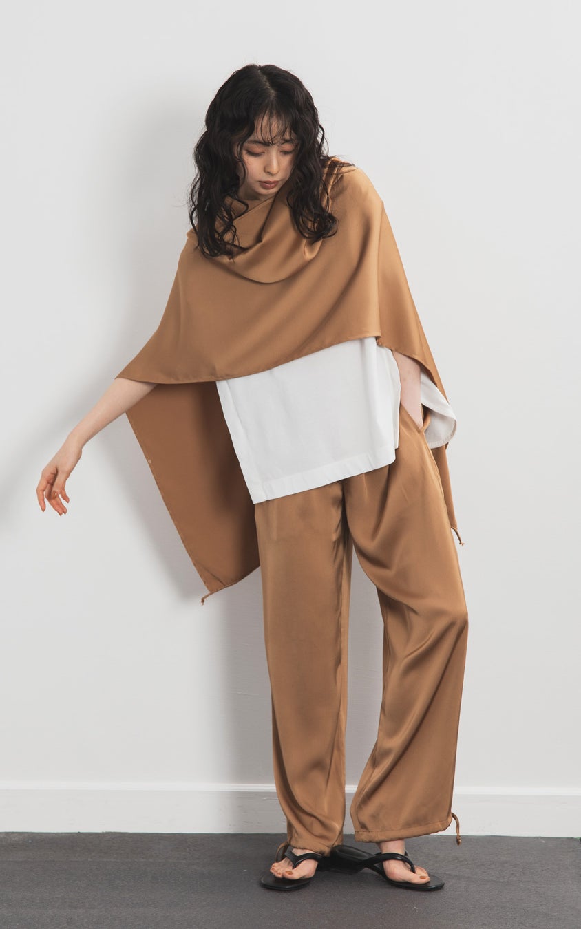 中東や南米、南アジアの、直射日光や砂ぼこりから身を守るスカーフや、布を肩で留める古代ギリシャのキトンなどから、快適さのヒントを得てデザインしました。レストランや劇場での、ちょっとしたドレスアップにもつかえます。