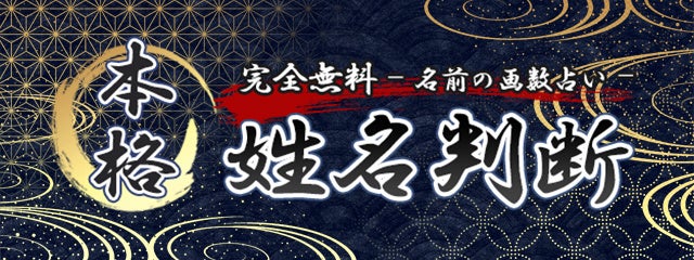 完全無料「姓名判断」 名前の画数からその人が持つ性格、運勢の吉凶を鑑定!長年付き合ってきた自分の名前にどんな真実が隠されているのをお教えします。また、結婚によってお名前が変わる時、これから生まれてくる赤ちゃんの命名などに、是非ご活用ください。