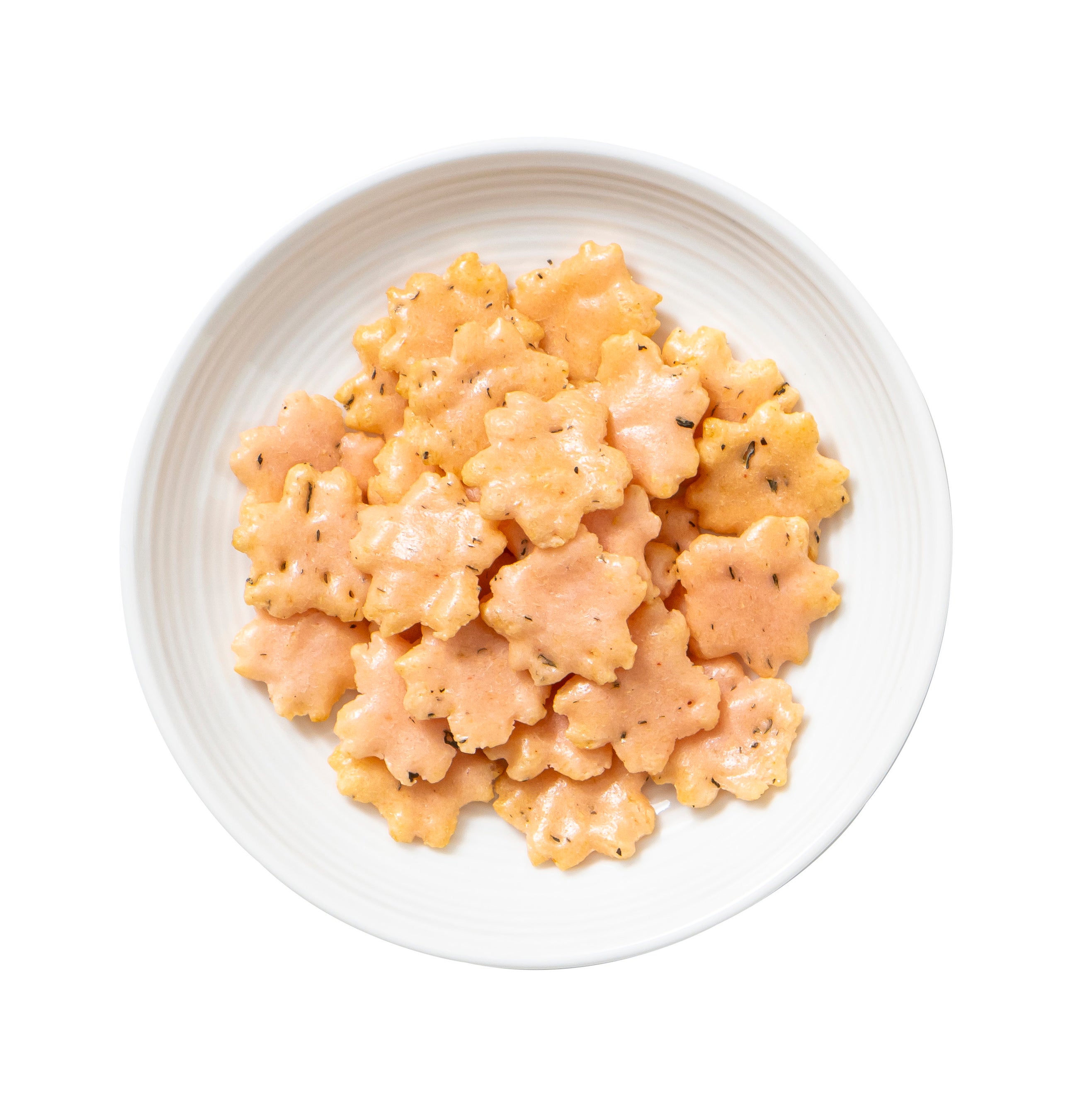 国産米を100%使用し、淡いピンク色の生地に塩漬けした国産の桜葉を練り込んだ、桜型の小粒あられ。さっくりと軽い食感に焼き上げ、桜のやさしい香りを引き立てるため、淡口醤油であっさりとした味に仕上げました。口に含むたび、桜の香りとともに春の気配がやさしく広がる味わいです。