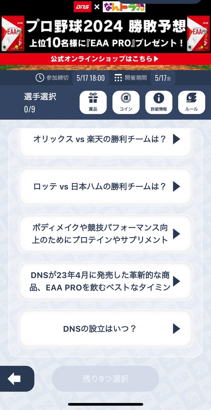 【スポーツニュートリションブランド「DNS」×「なんドラ」】シェイカーいらずの革新的なEAA(必須アミノ酸)製品『EAA PRO』が当たる !プロ野球勝敗予想企画を開催!