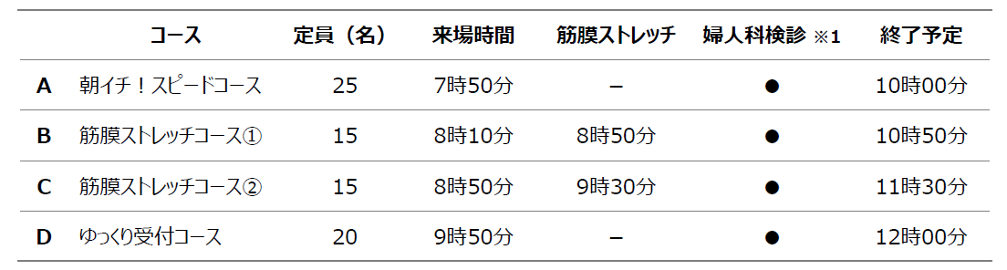 4つのコースを用意し、検診スタッフは医師を含めすべて女性が担当します。