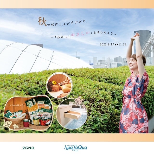 東京ドーム天然温泉 スパ ラクーア(文京区春日1-1-1 ラクーアビル5~9F)は、2022年9月17日(土)~11月23日(水・祝)の期間、『秋のボディメンテナンス –「わたしにやさしい」をはじめよう-』を開催します。