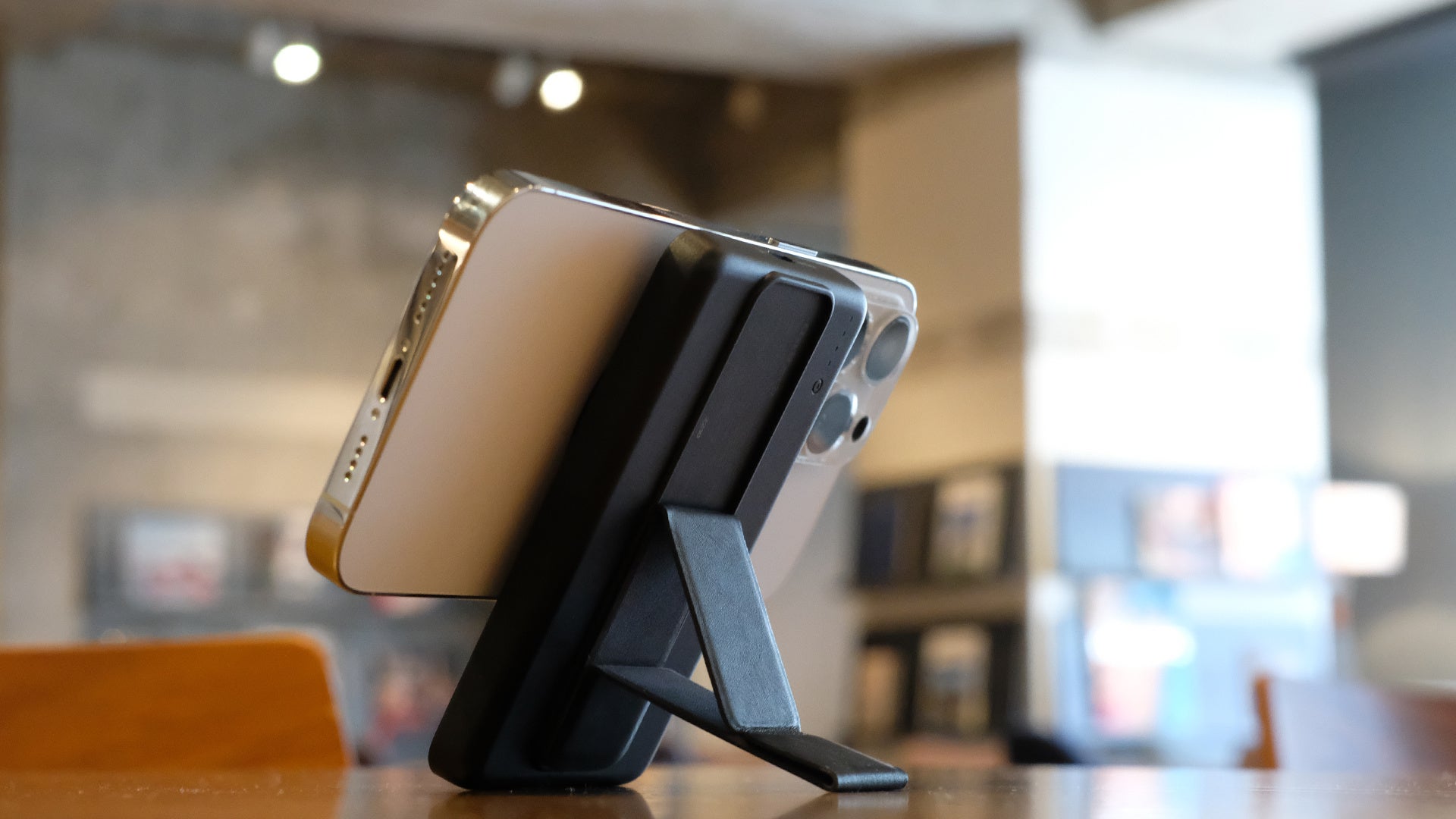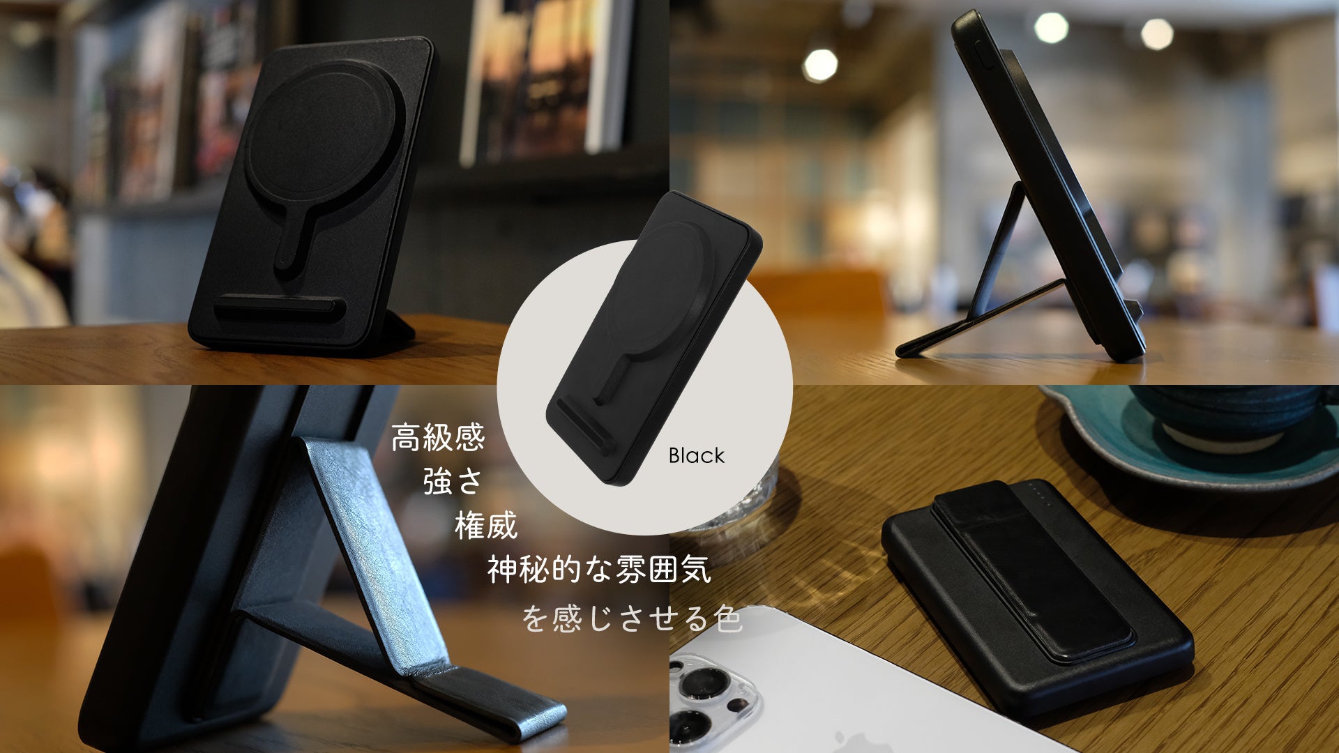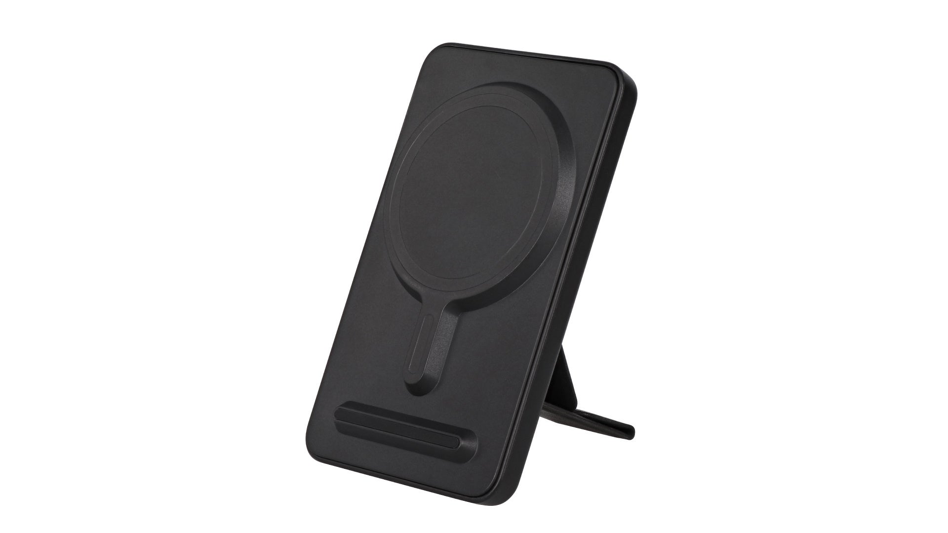 iPhone 12シリーズ以降Magsafeに対応したiPhoneをワイヤレス充電できるモバイルバッテリーです。iPhone本体にマグネットでくっつけるだけで充電でき、ケーブルもないので邪魔になりません。さらに背面に折り畳み式のスタンドも付いているので便利に使用できます。