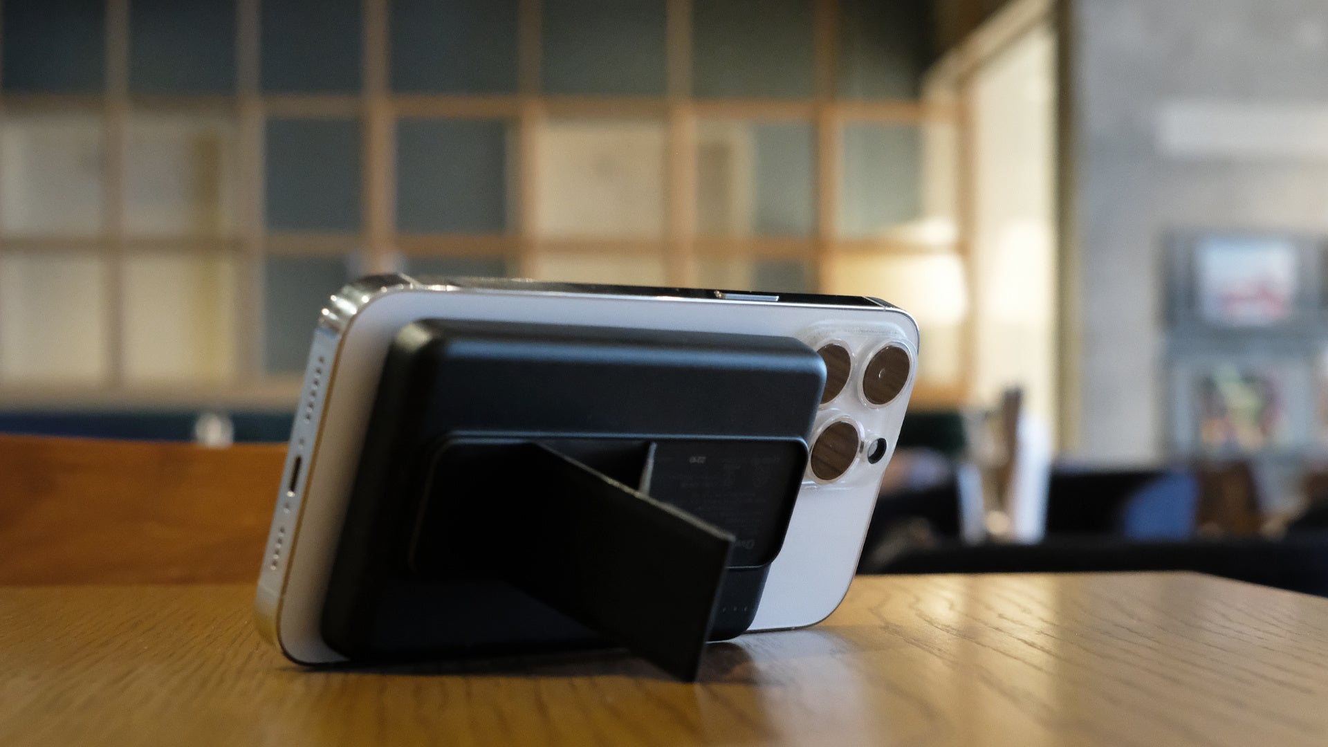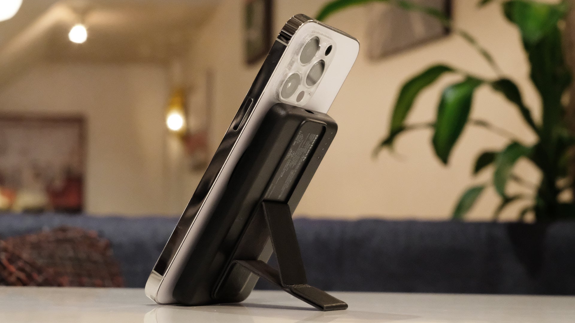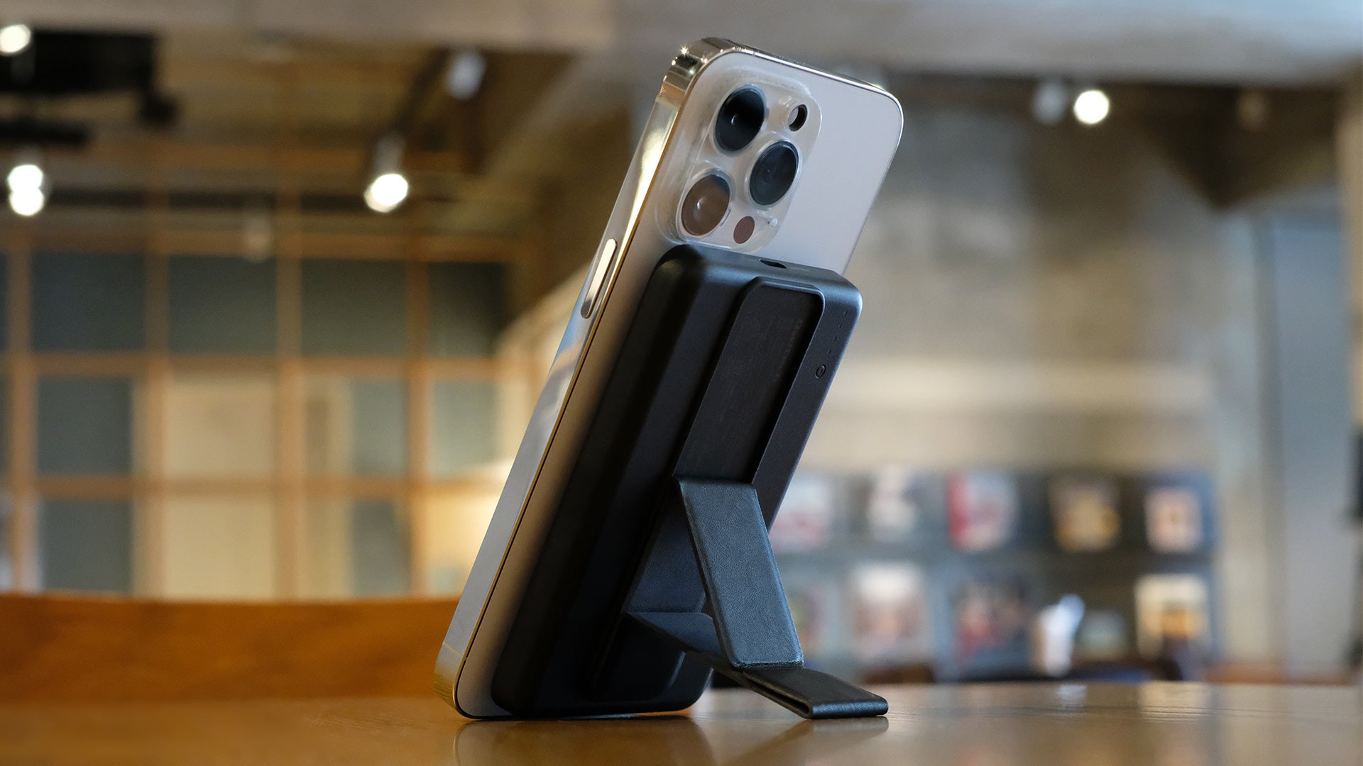 iPhone 12シリーズ以降Magsafeに対応したiPhoneをワイヤレス充電できるモバイルバッテリーです。iPhone本体にマグネットでくっつけるだけで充電でき、ケーブルもないので邪魔になりません。さらに背面に折り畳み式のスタンドも付いているので便利に使用できます。