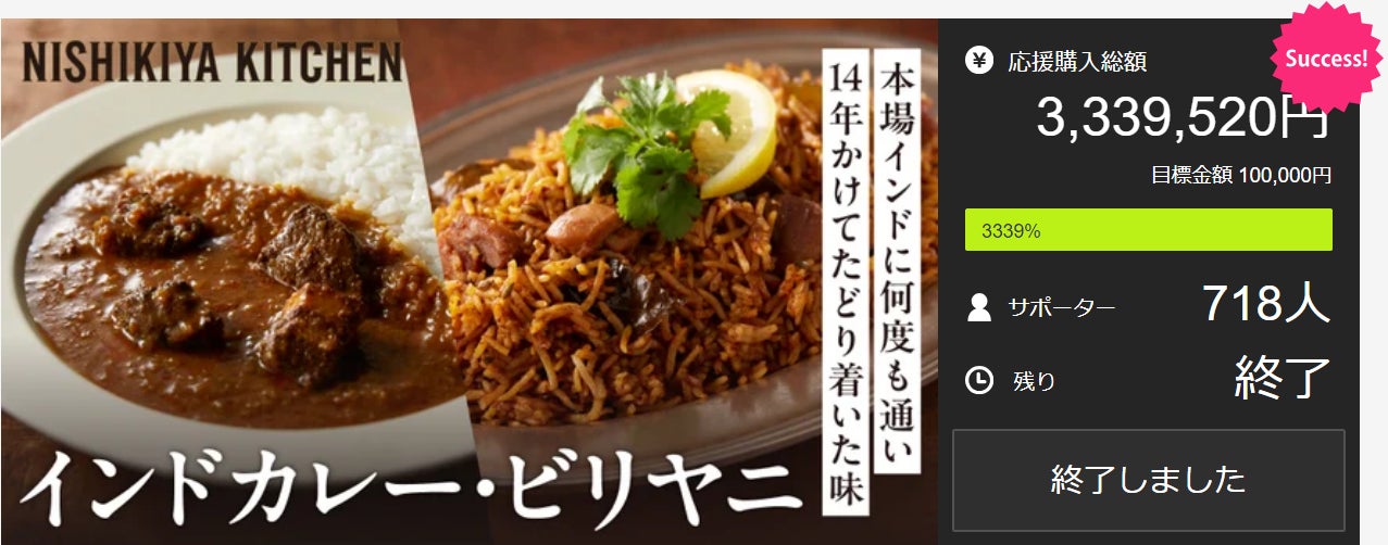 開始11分で目標金額を上回り、最終的には718名のサポーターの皆さまに、3,339,520円という目標を大きく上回る応援をいただき、連日の応援にスタッフ一同驚きと嬉しさでいっぱいのプロジェクトとなりました。