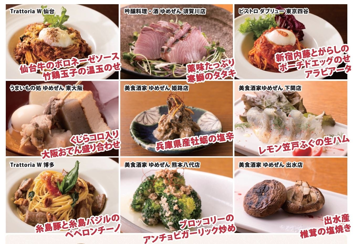 ホテルウィングチェーン直営レストラン・居酒屋 全国9店舗で開催