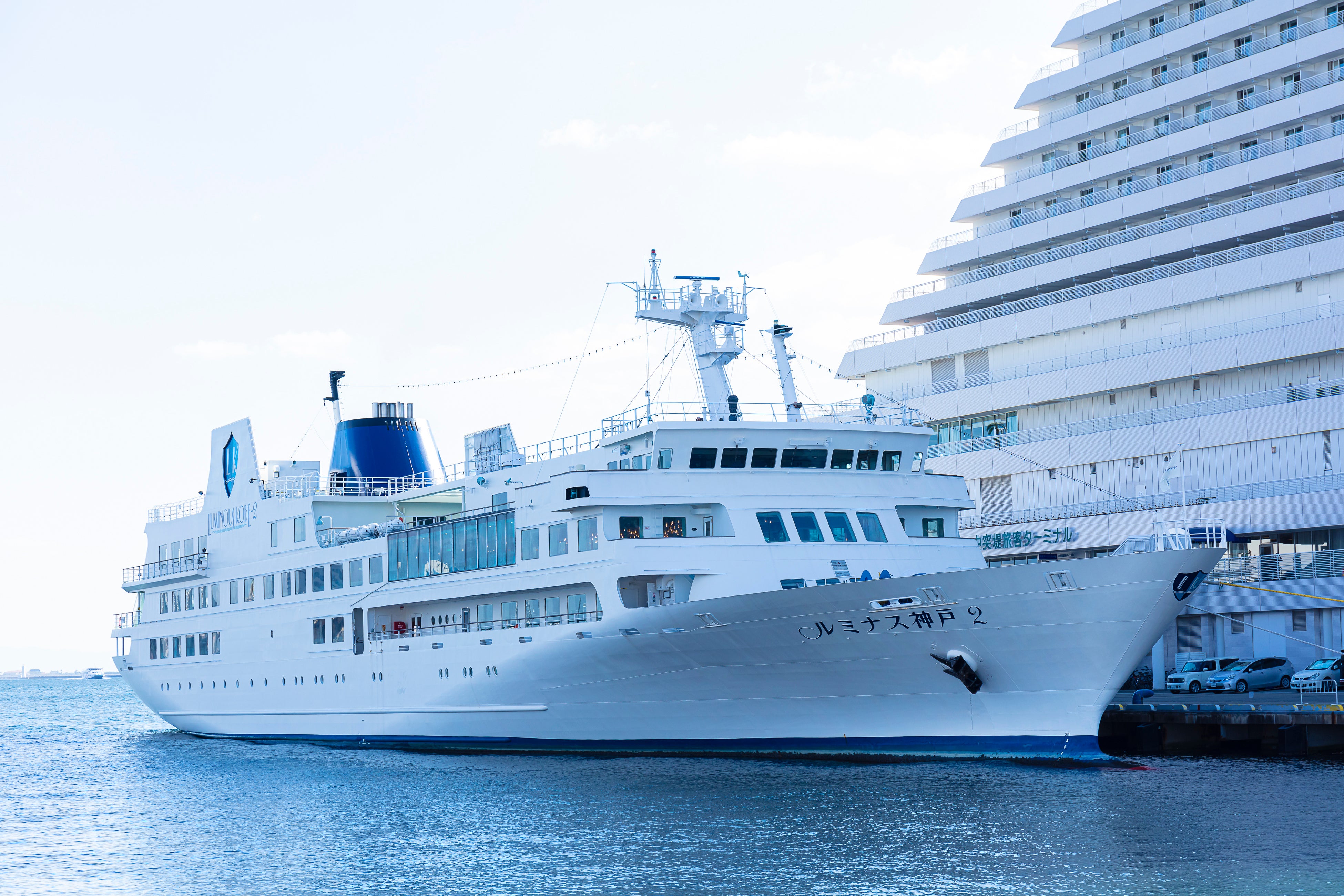 ※中突堤旅客ターミナル東側岸壁に停泊中の「ルミナス神戸2」の船内で4時45分よりご乗船受付を行います。
