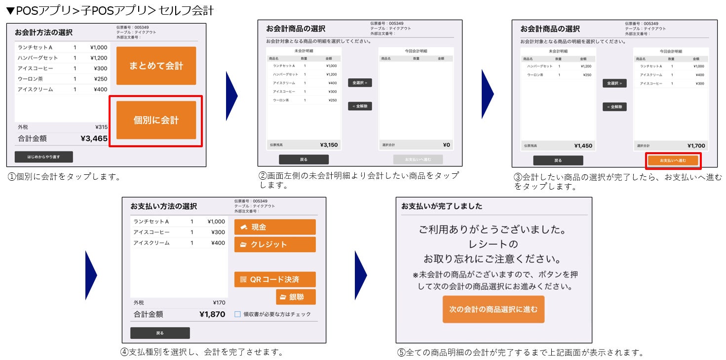 新機能3:セルフ会計機能強化(セルフ個別会計機能/事前設定)