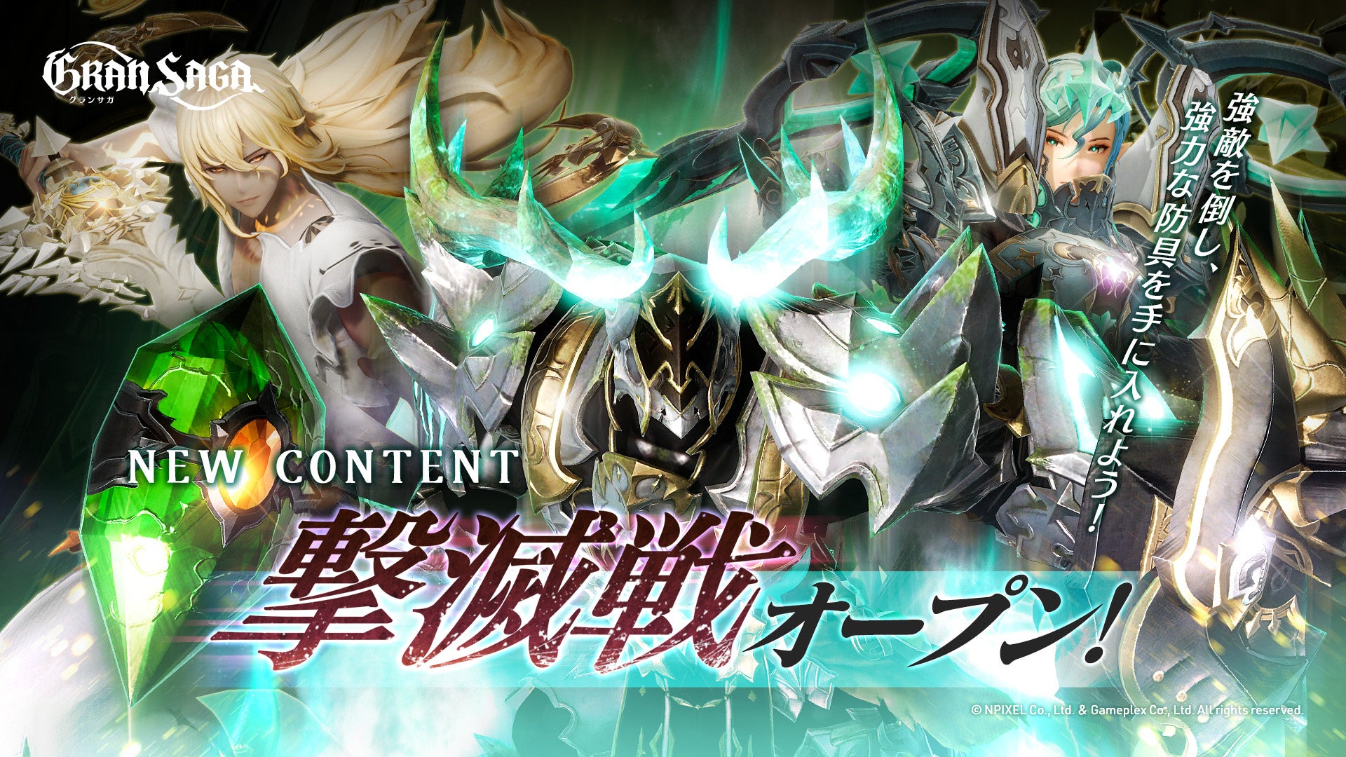 新たなコンテンツ「撃滅戦」の実装をはじめ、各種コンテンツの機能調整やイベントの開催など、ユーザーの皆様がさらにグランサガをお楽しみいただけるアップデート内容となっております。