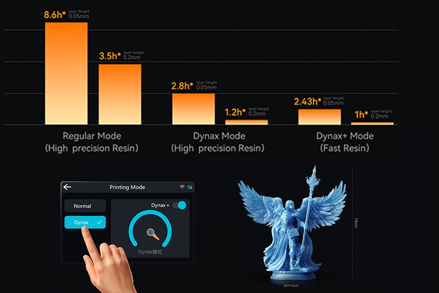 Dynax+モードは特定の条件下で150mm/hに達することができますが、130mm/h以下の速度の場合のほうが造形品質は向上します。