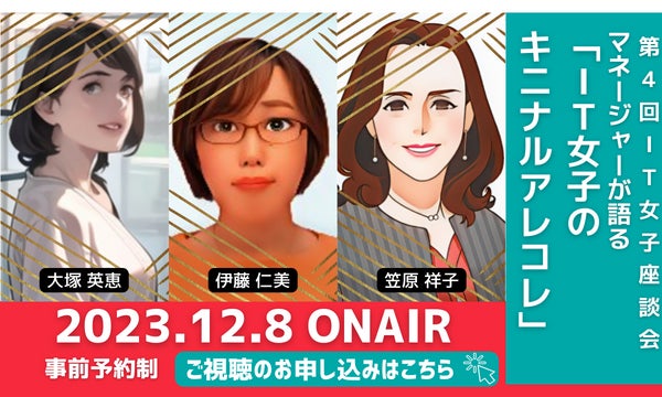 異業種からの転職だけでなく、社内でIT分野への転身を目指す女性もいるため、「ITに携わる女性」にフォーカスをして、登壇者同士で胸のうちを赤裸々に語り合う内容となっており、2022年度に旗揚げして早くも第4回目となる「IT女子座談会」を12月8日(金)にWEBオンライン開催します。