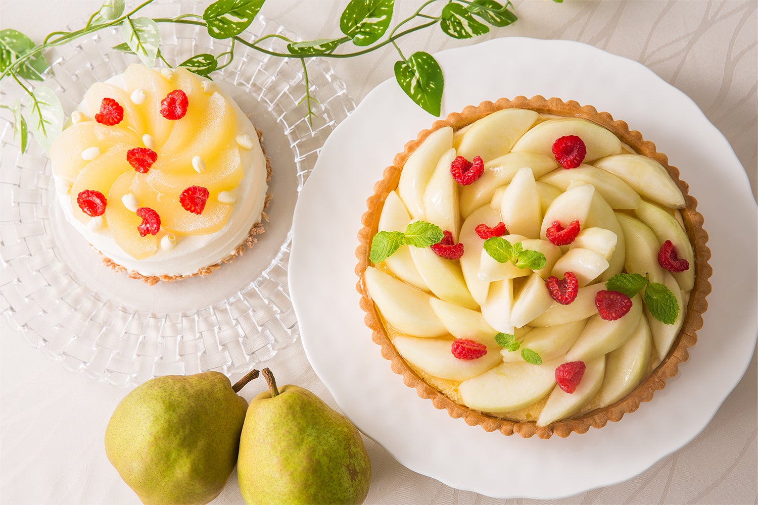 今回、フードブティック<ポピンズ>では、ラ・フランス特有の芳醇な香りと上品な甘みのコンポートを使ったタルトとショートケーキ(ホール)をご用意いたします。ラ・フランスで贅沢に周りを包み込んだ「ラ・フランス タルト」は、ラ・フランスのまろやかな甘みをカスタードクリームが引き立て、とろけるような食感とタルト生地のサクッとした食感をお楽しみいただけます。「ラ・フランス ショートケーキ」は、ふわふわ食感のスポンジ生地と口溶けなめらかな生クリームに、ラ・フランスをたっぷりとはさみこみ、トップには大きくカットしたラ・フランスを飾りました。存分に引き出したラ・フランスのまろやかな甘みと芳醇な香りとともに、深まる秋を感じながら、ご自宅でのティータイムをお楽しみいただけます。