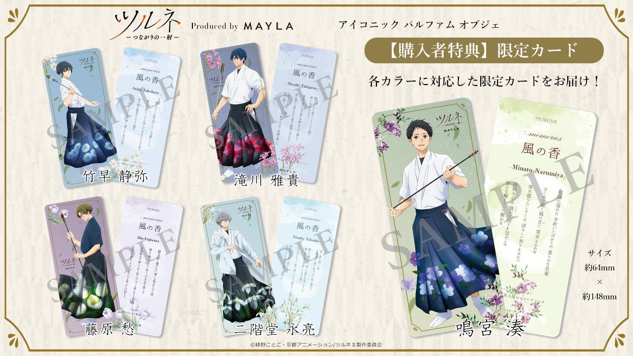 【大反響】大人気京都アニメーション作品『ツルネ-つながりの一射-』×MAYLA 第二弾コラボレーション香水が登場!2024年5月13日(月)17:00より予約販売開始!