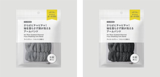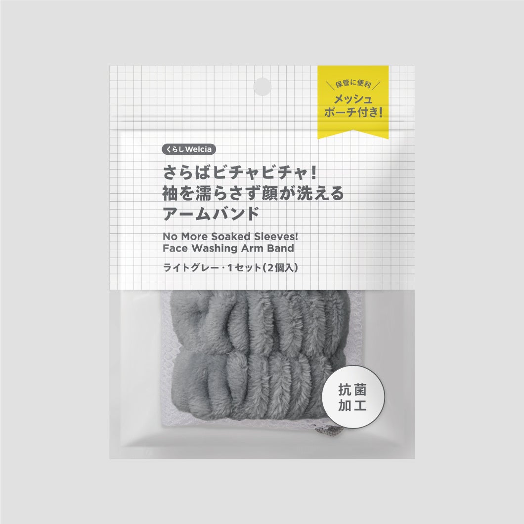 洗顔時に水が腕を伝って袖や床が濡れてしまうお悩みを解決するために、手首にはめるだけの「吸水アームバンド」を開発しました。本商品は、ポリエステルを使用しているため吸水性抜群、肌当たりも柔らかで快適です。またあったらうれしい抗菌加工を施しました。さらに、バラバラになりがちなバンドをまとめて保管できる通気性の良いメッシュポーチ付きです。