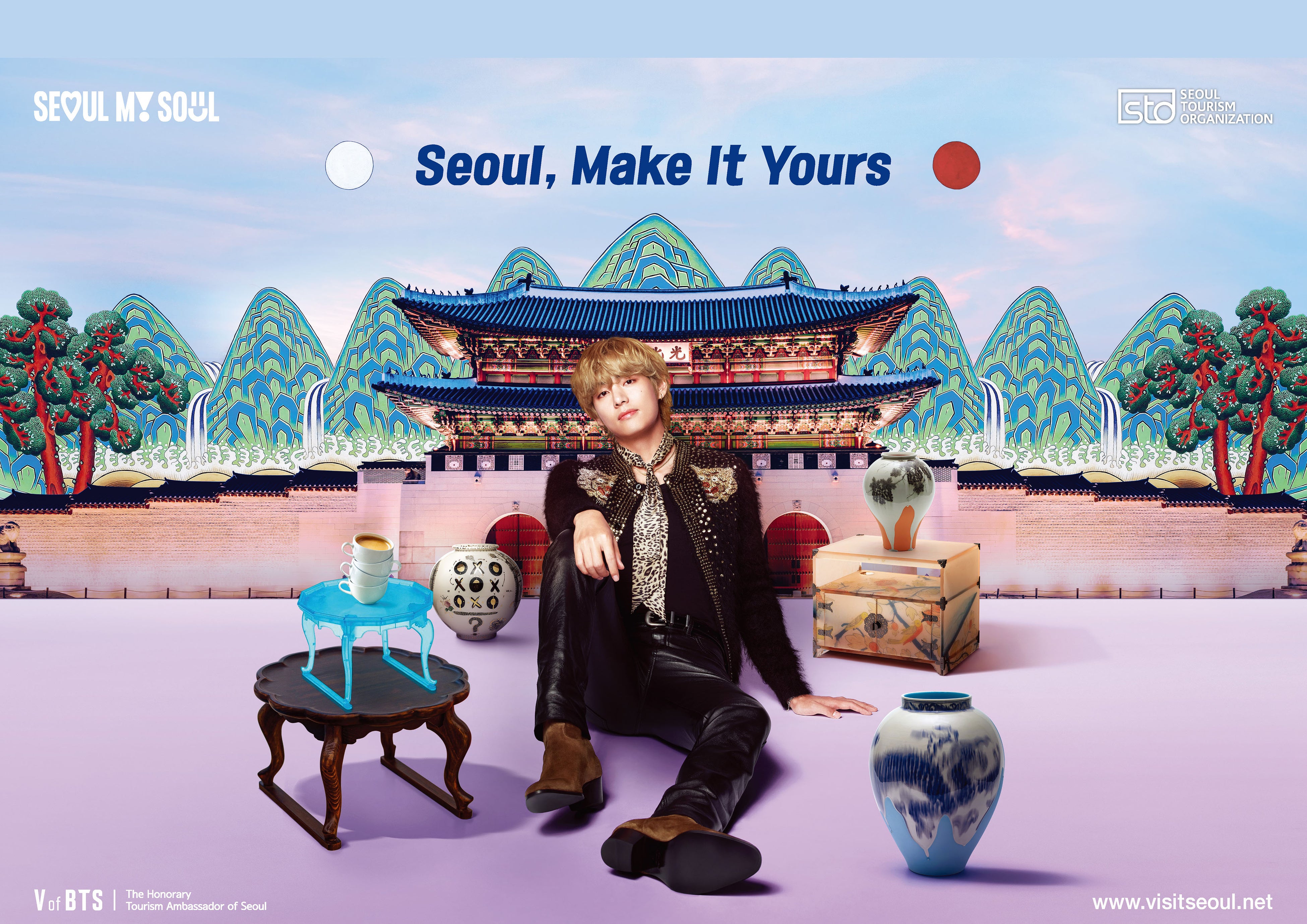 ポスターや、韓国観光を紹介するポスター(男性アイドルグループBTSメンバー