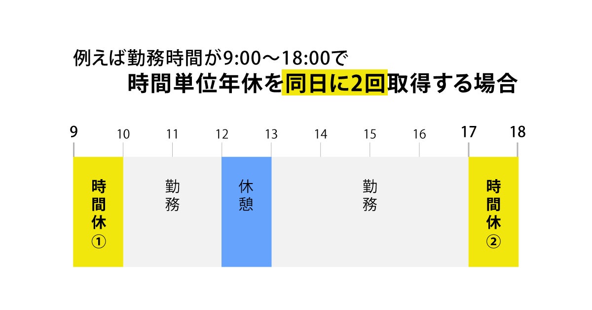 時間単位年休取得機能のアップデートにより、同日に2回まで時間単位年休(有給休暇/振替休日/代休/特別休暇)の申請が可能になりました。このことで、育児や介護を⾏う従業員が、看護休暇や介護休暇を1日の中で柔軟に取得することができます。