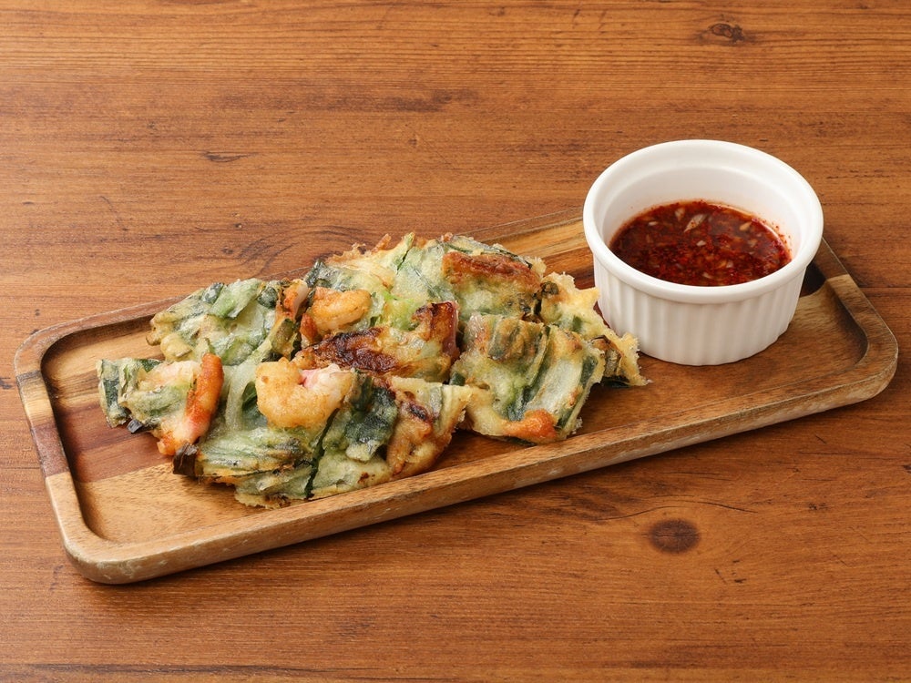 チヂミ[たっぷりチーズ/豚キムチ/いかと海老の3種類からお選びいただけます](プラス¥300)