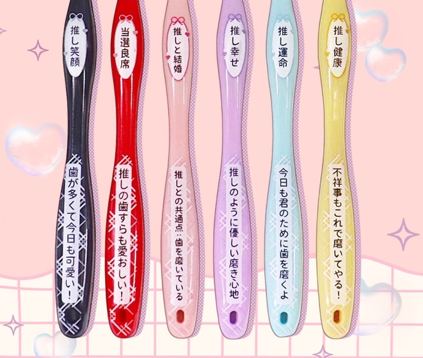 さらに、柄の下部には"推し活格言"が書かれており、毎日の歯磨きでクスッと笑えて共感できる内容となっています。