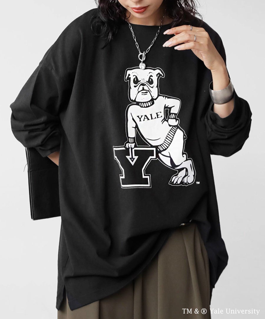 胸元のアーチ『YALE』ロゴとエンブレムが、シンプルながらスタイリッシュに使いやすいデザインのロンT。