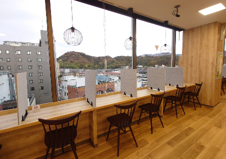 店内には、お子様向けの広々としたフリースペース、眺望のよい窓側にはパーソナルスペースを設けました。読書や自習など、自由なスタイルでごゆっくりとお過ごしいただけます。