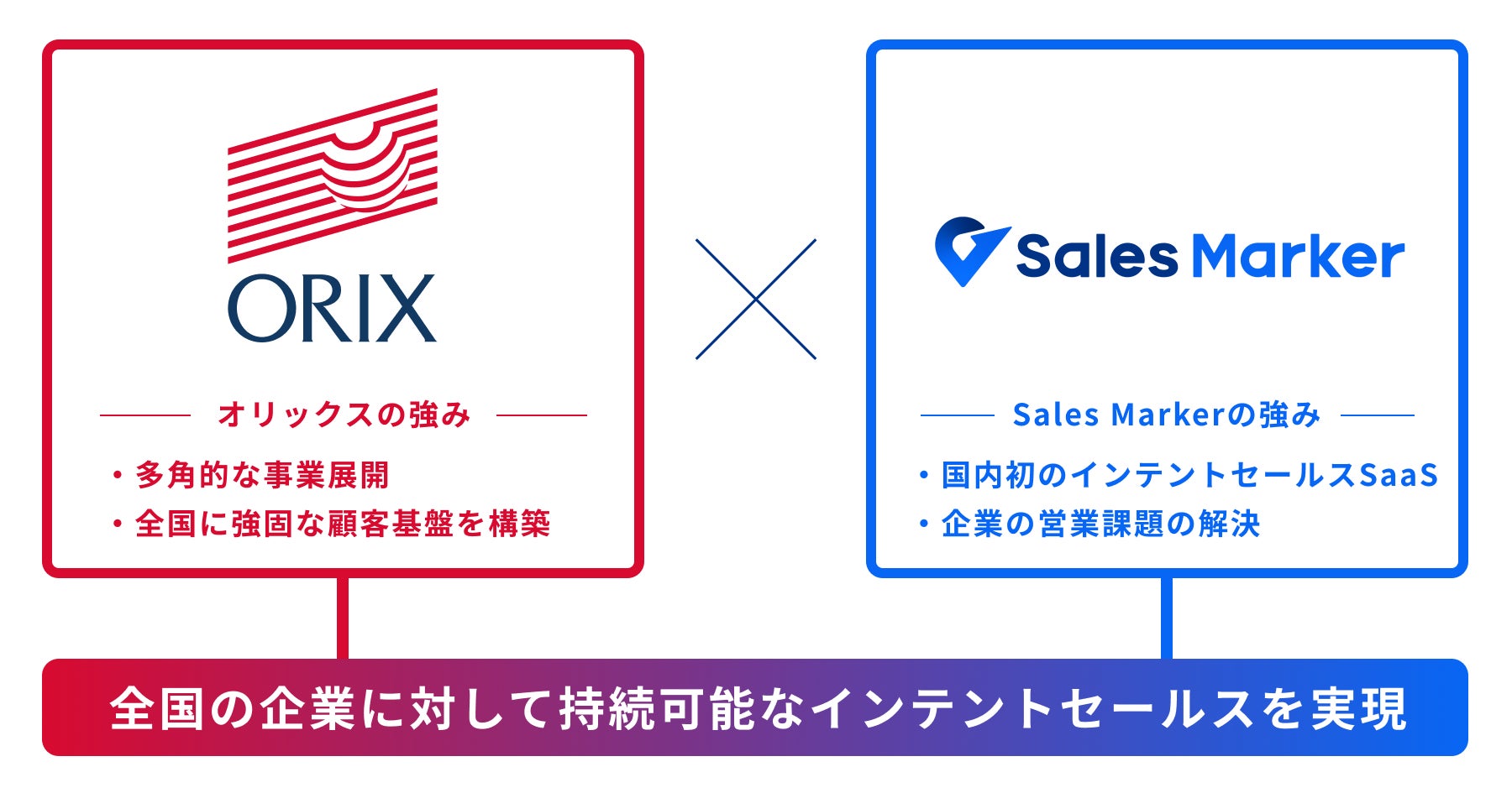国内初※1「顧客起点」でおこなう新時代の営業手法「インテントセールス」を実現する『Sales Marker(セールスマーカー)』を開発・提供する株式会社Sales Marker(本社:東京都港区、代表取締役 CEO:小笠原 羽恭、以下:当社)は、オリックス・キャピタル株式会社(本社:東京都港区、社長:渡辺 展希、以下:オリックス・キャピタル)から出資を受けたことをお知らせします。あわせて、オリックス株式会社(本社:東京都港区、社長:井上 亮、以下:オリックス)と顧客紹介に関する業務提携契約を締結しましたので、お知らせします。