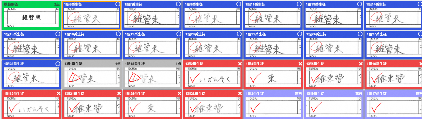 スキャンした答案用紙をPC上で採点することができるブラウザ型の採点システムです。採点結果は自動集計のため、成績処理にかかる時間を大幅に削減することができ、子どもと向き合う時間を増やすことができます。