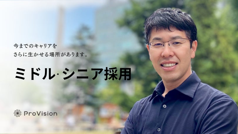 株式会社ProVision(以下、ProVision)は、2024年1月5日(金)より、40~60歳の年齢関係なく働きたいという意欲をお持ちの方に向けた「ミドル・シニア採用」を開始しました。