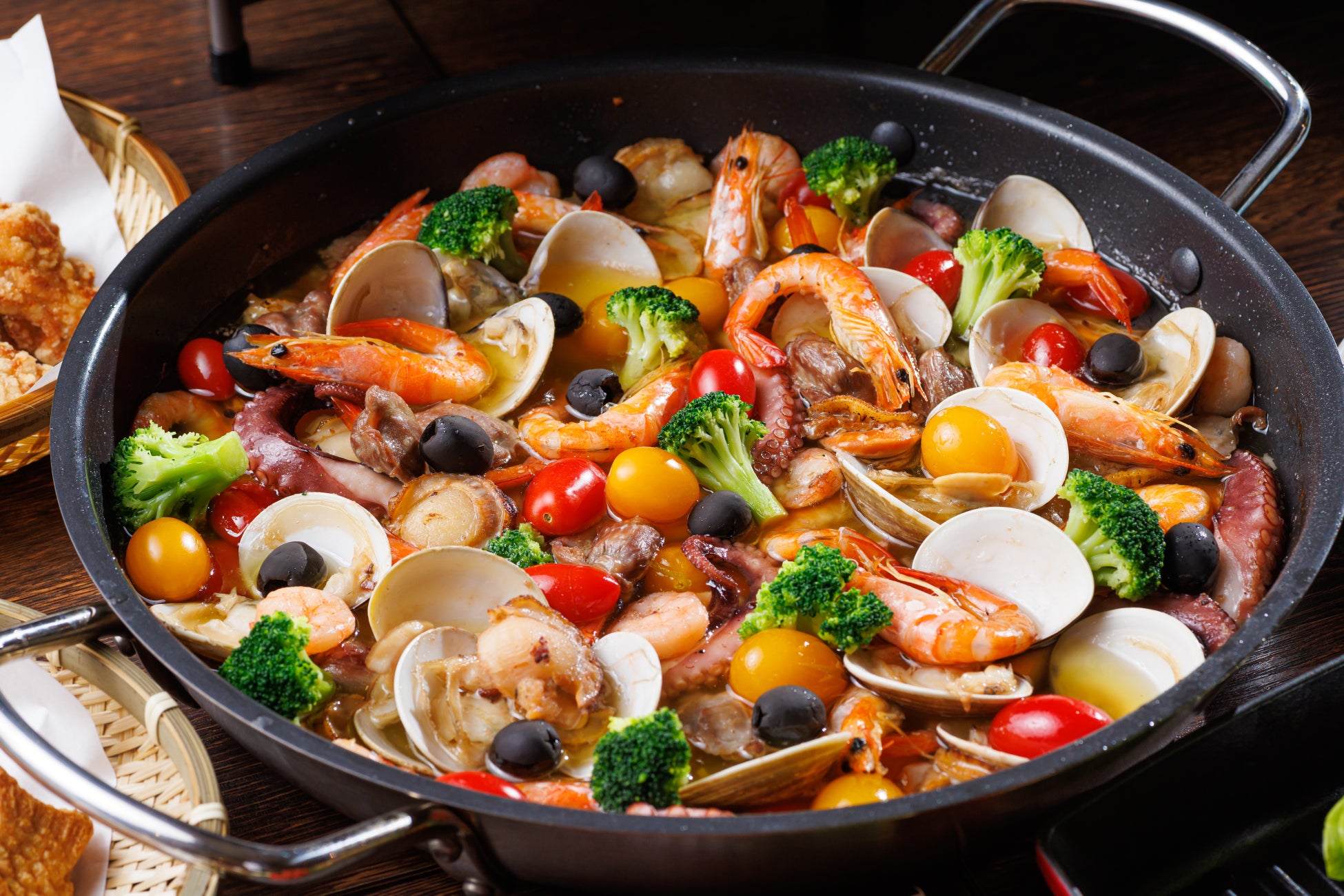 アメリカ南部のケイジャン料理の一つで、複数のスパイスを調合した香辛料「ケイジャンスパイス」と魚介類をシンプルに混ぜ合わせて鉄板で焼きました。スパイシーな香りと共にお召し上がりください。