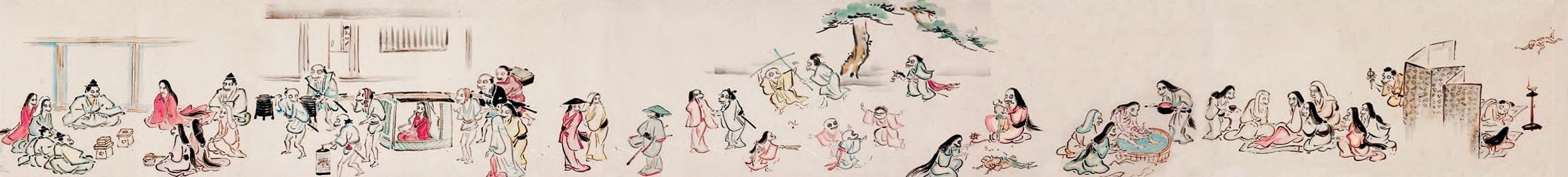 一人の男の一生を描いた絵巻物。登場人物はすべて愛くるしい骸骨の姿で描かれています。