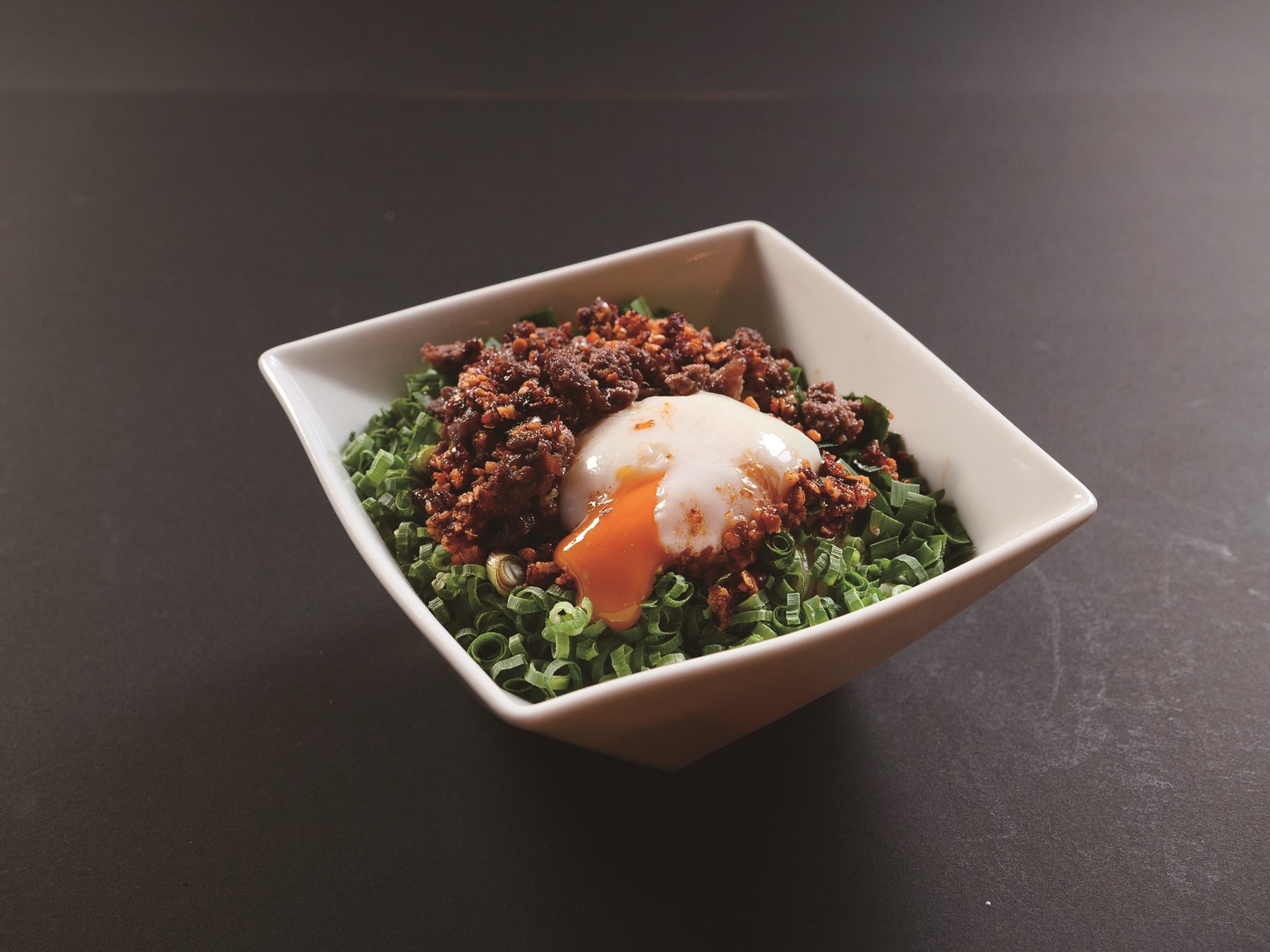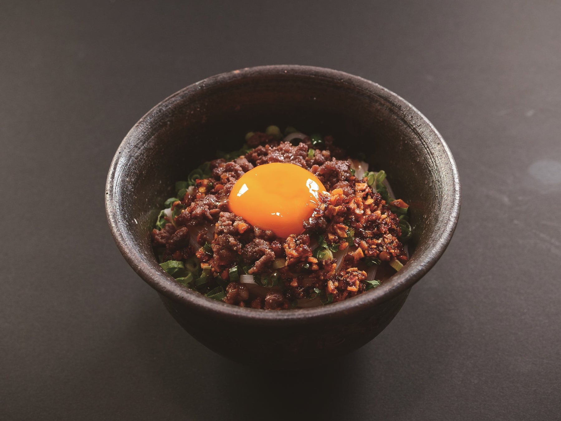 焼肉すだくに合うように甘辛い挽肉とガーリックを効かせ、アクセントでトマトの酸味が癖になる