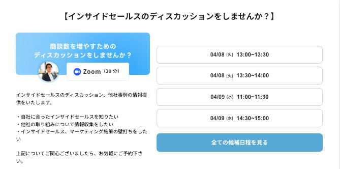 発行したURLから顧客が商談可能な日程を選択すれば日程調整は完了です。