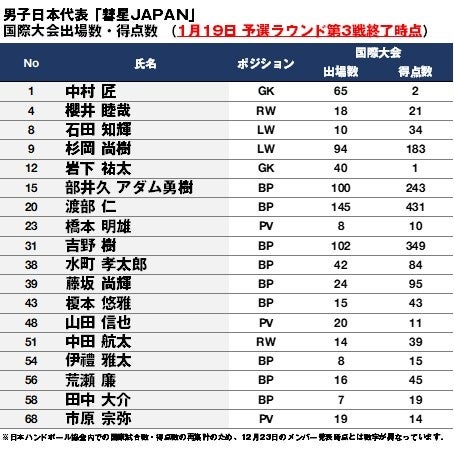現在、クウェートで開催されている第22回ハンドボール男子アジア選手権の予選ラウンド・イラン戦(現地時間1月19日、日本時間20日)において、ハンドボール男子日本代表「彗星JAPAN」の部井久アダム勇樹選手が、日本代表国際試合出場100試合を達成しました。