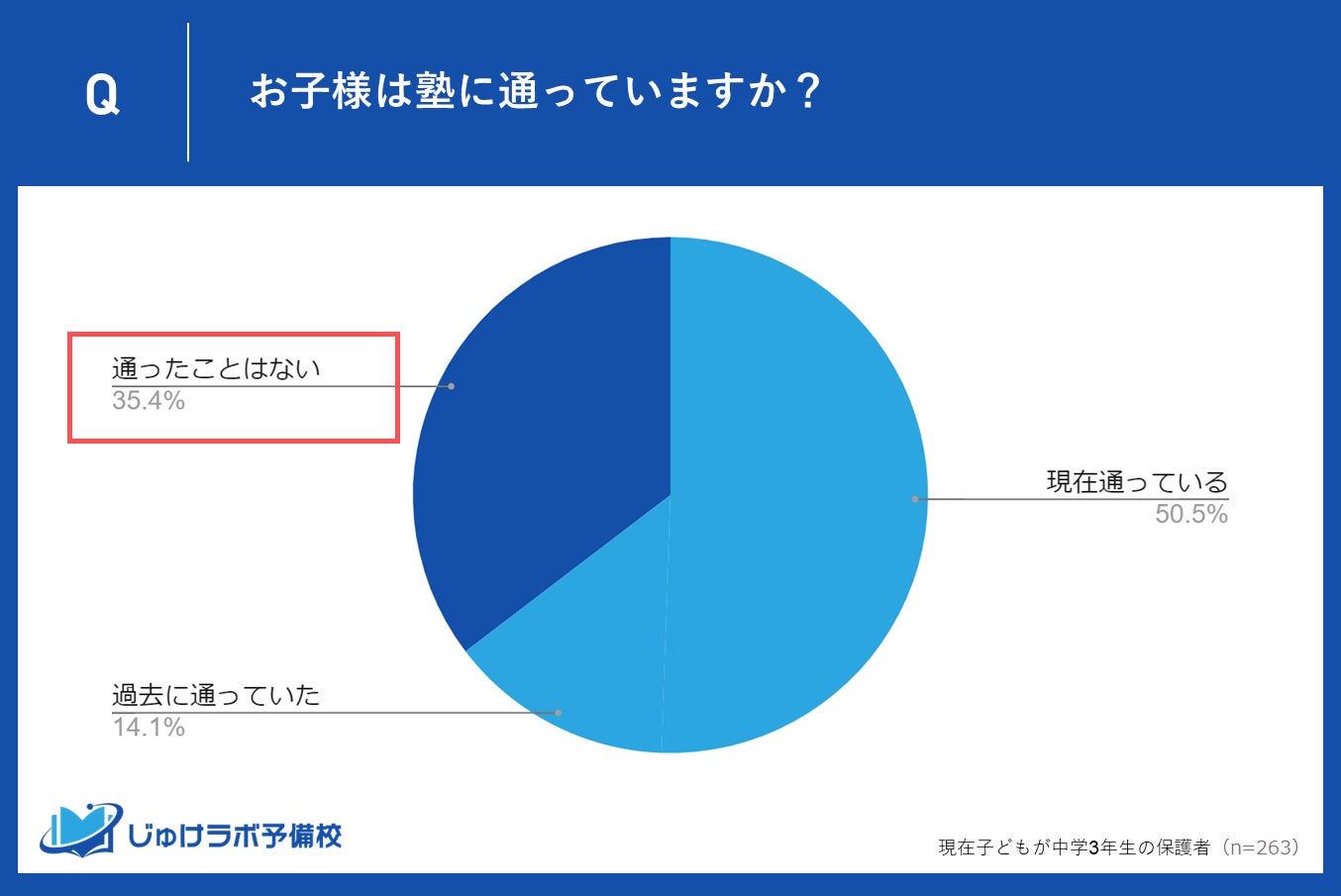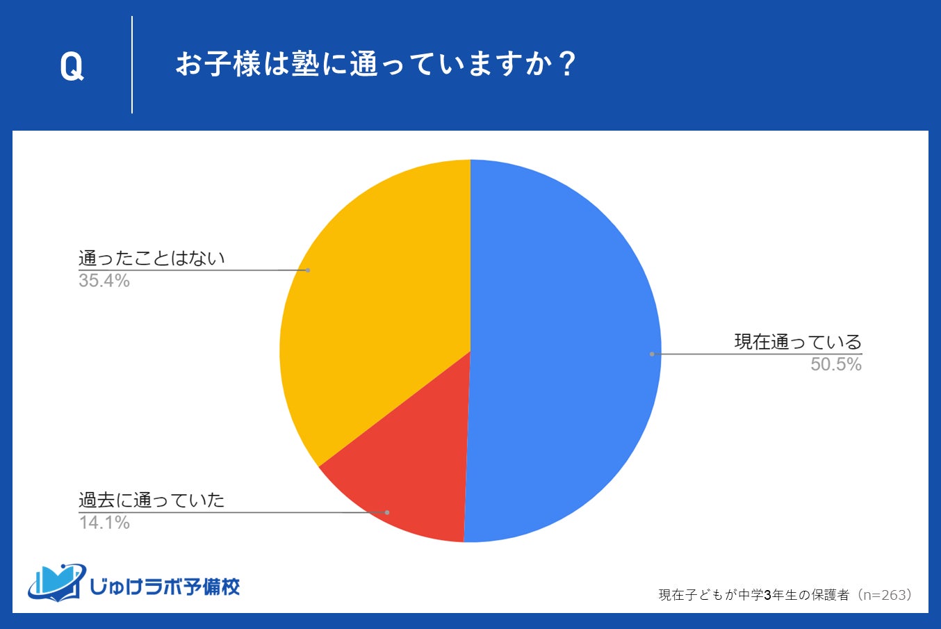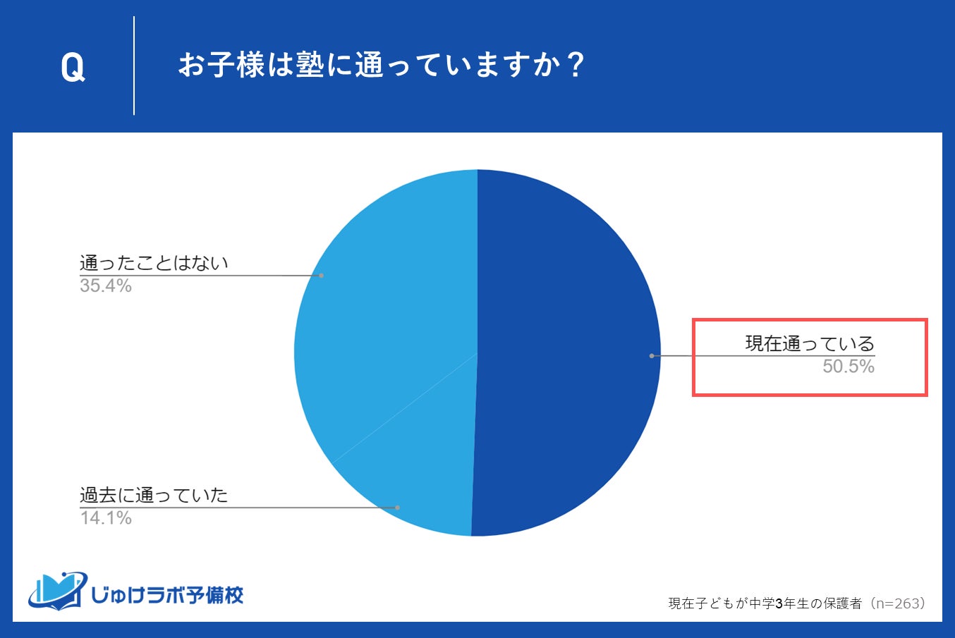 中学3年生の保護者を対象に行ったアンケート調査の結果、お子様が現在塾に通っていると回答した保護者が50.5%に上ることが明らかになりました。
